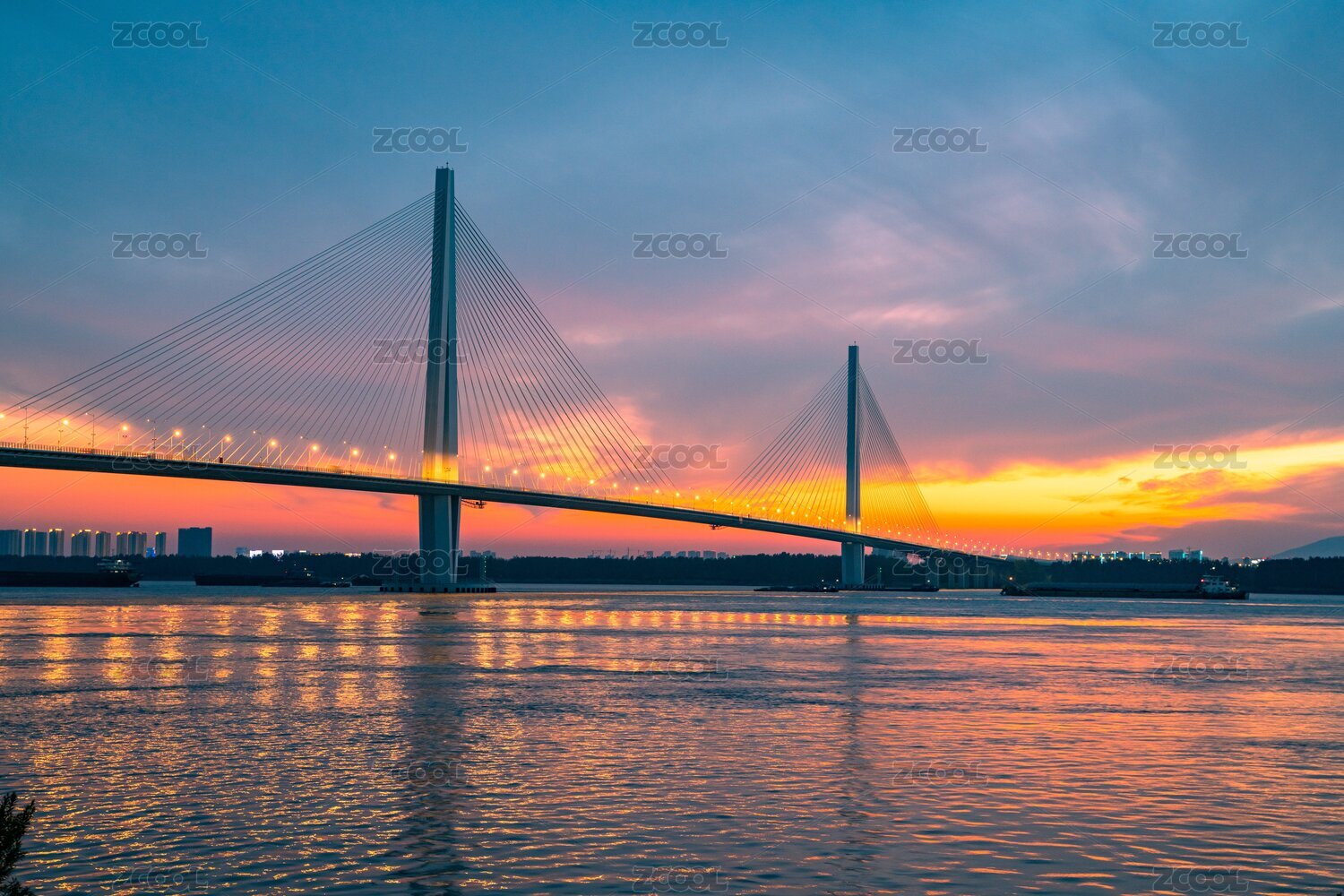 南京,江心洲长江大桥,黄昏,晚霞,建筑,室外,无人