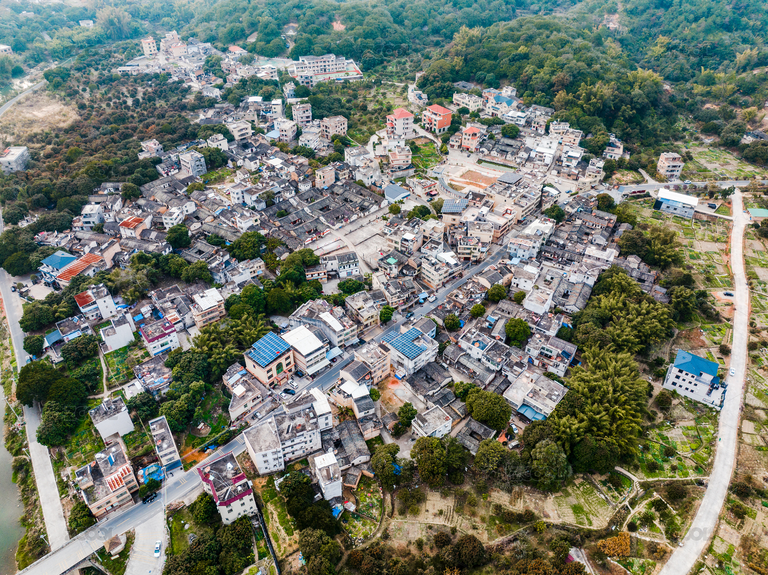 中国广东梅州丰顺建桥围航拍
