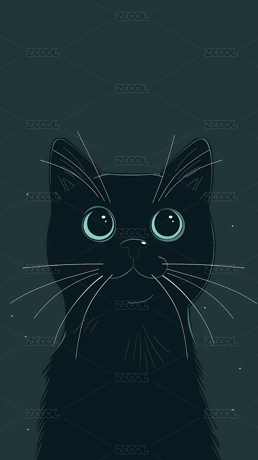 绿底卡通黑色小猫插画海报背景