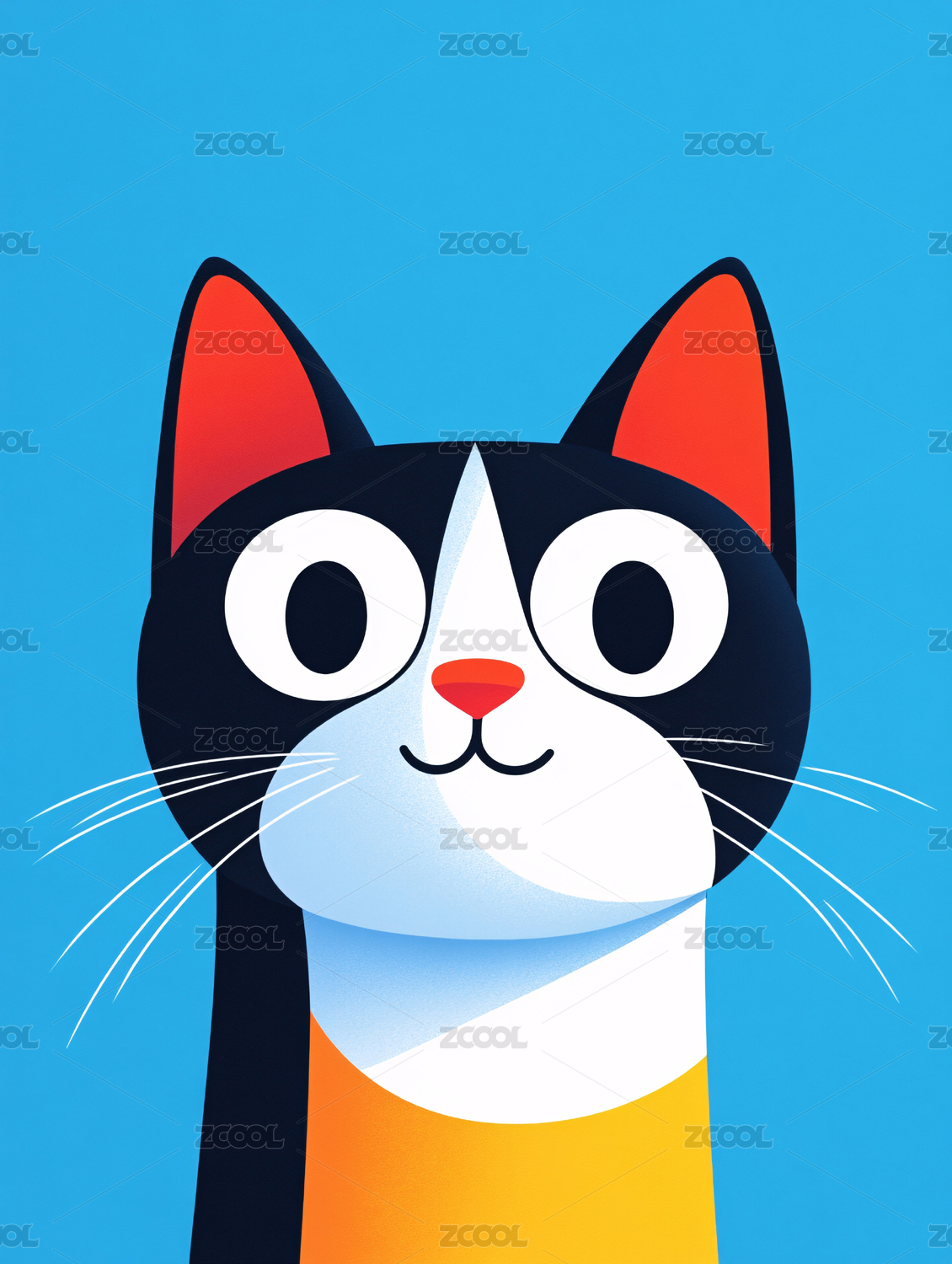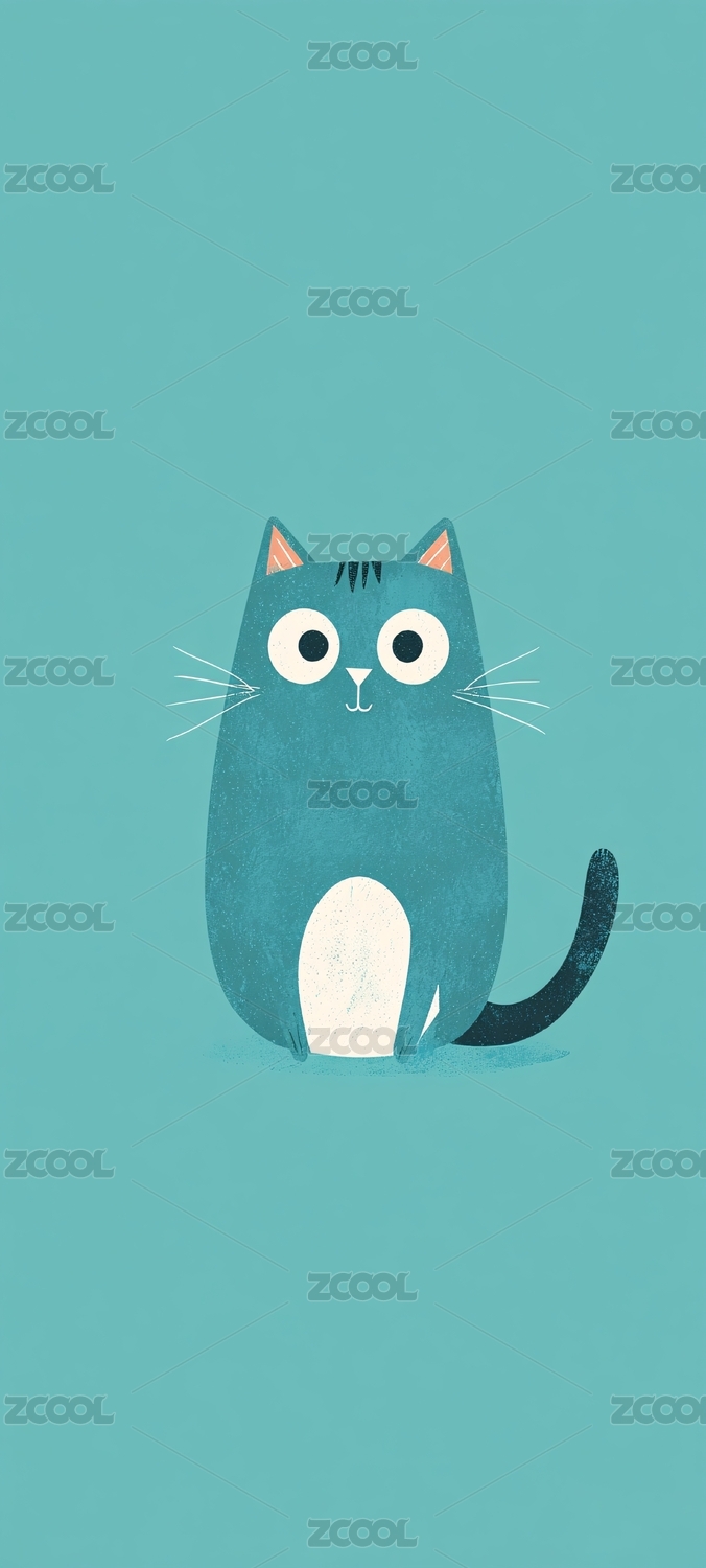 扁平小猫插画明亮一只可爱宠物猫绘画