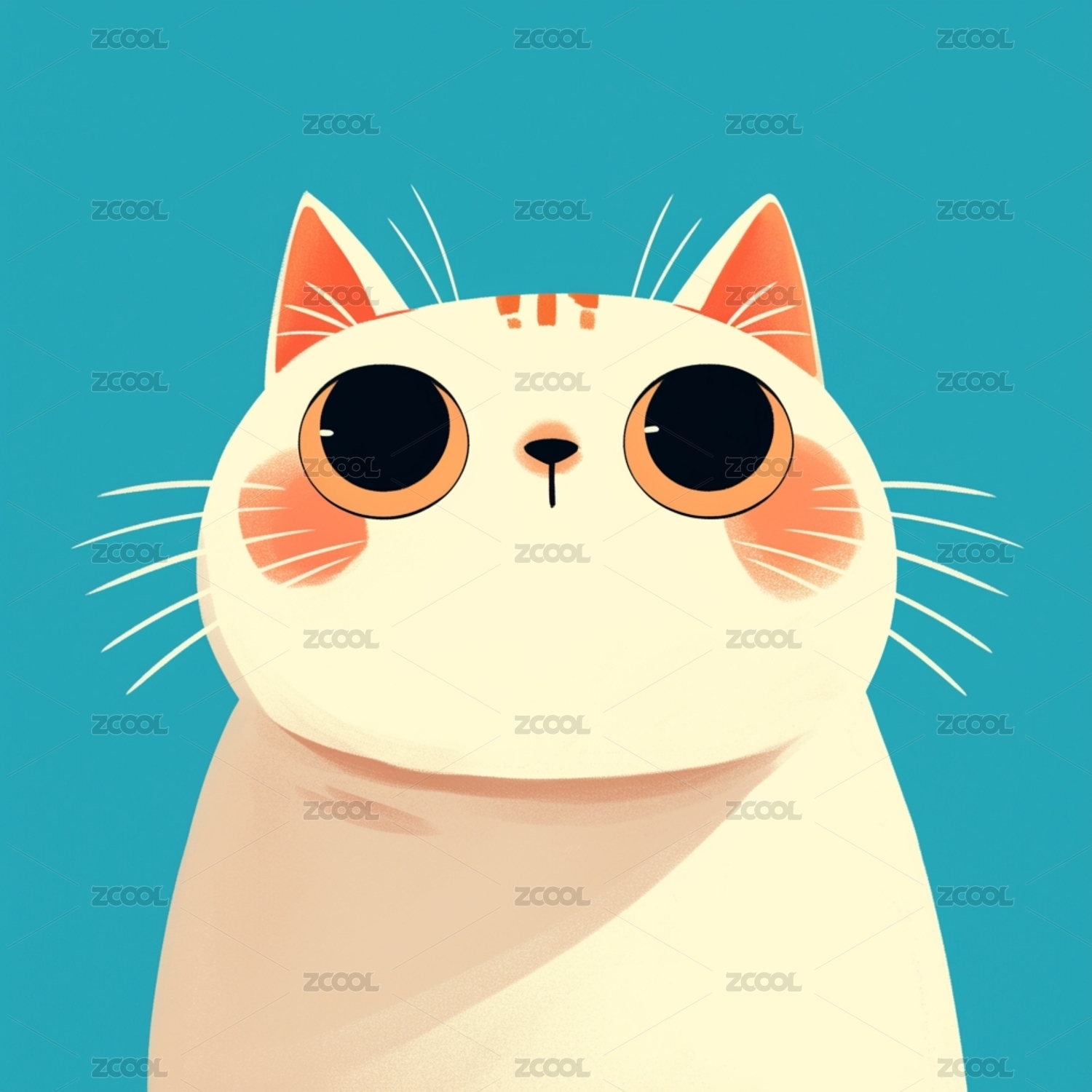 白背景,一只,宠物猫,插画,绘画,涂鸦,猫,蹲,尖耳朵,大眼睛
