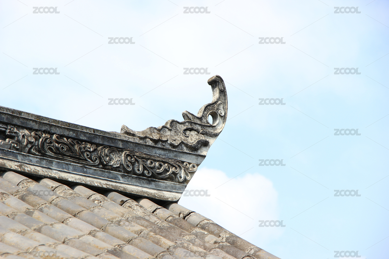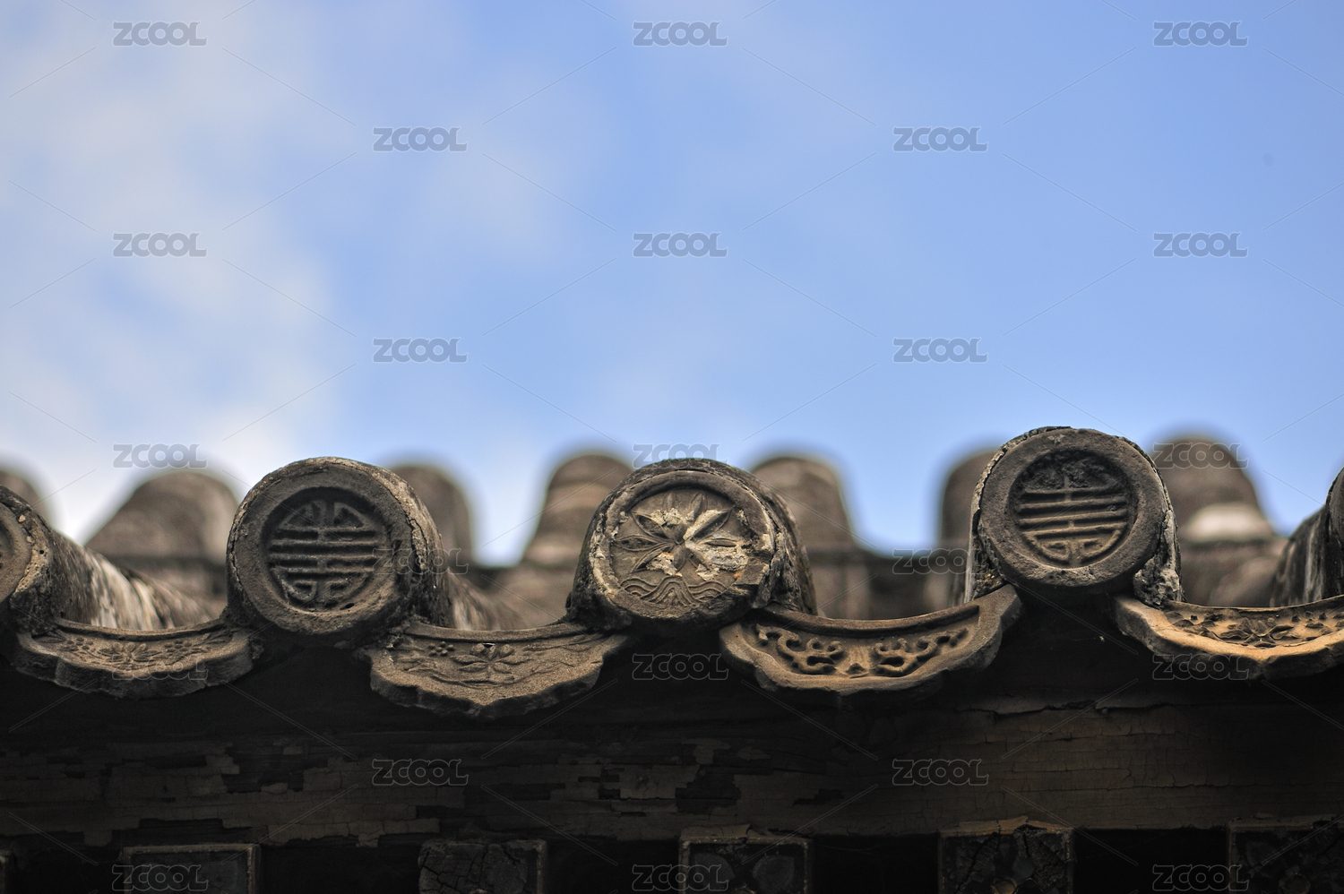 中国传统建筑的屋顶局部特写