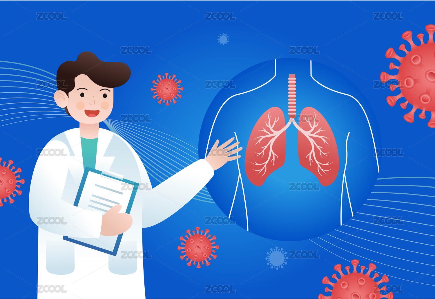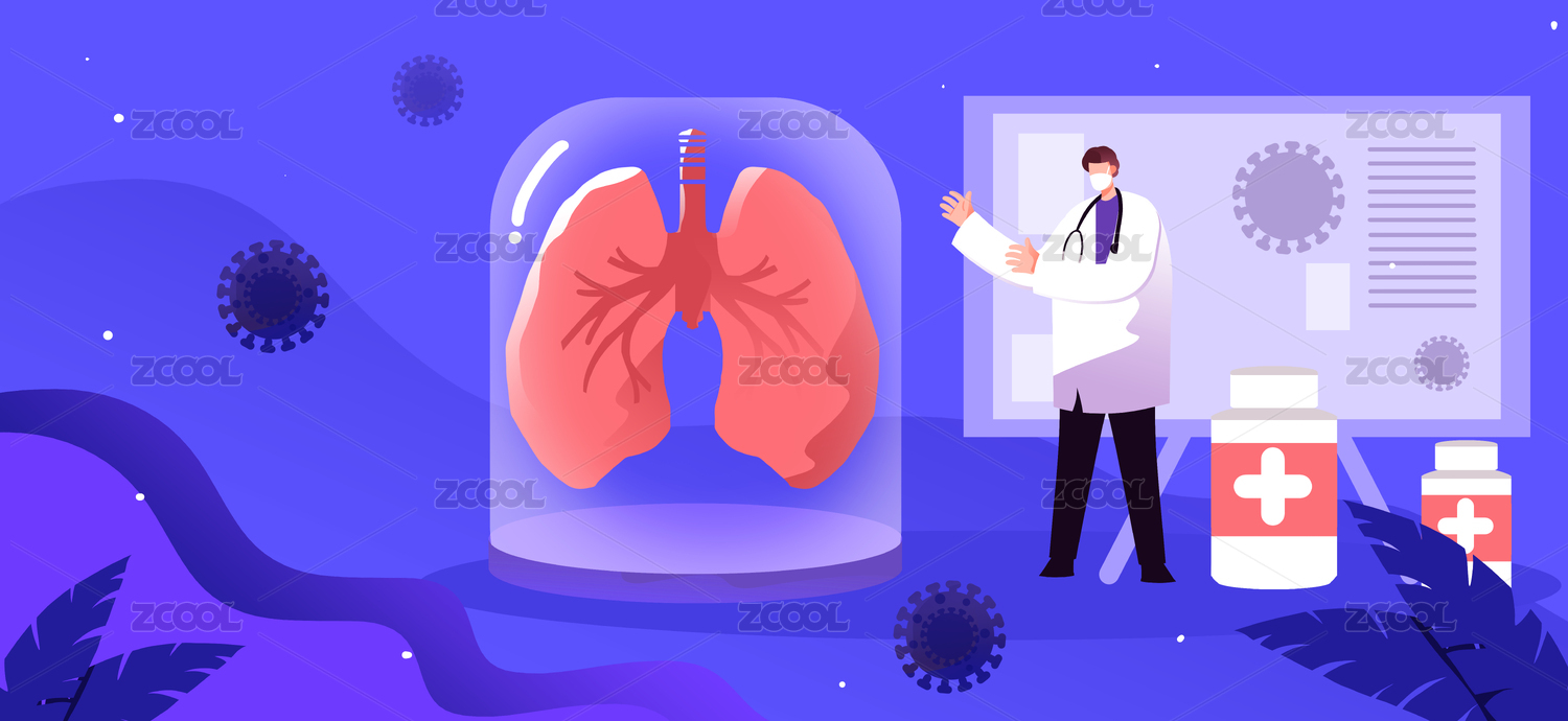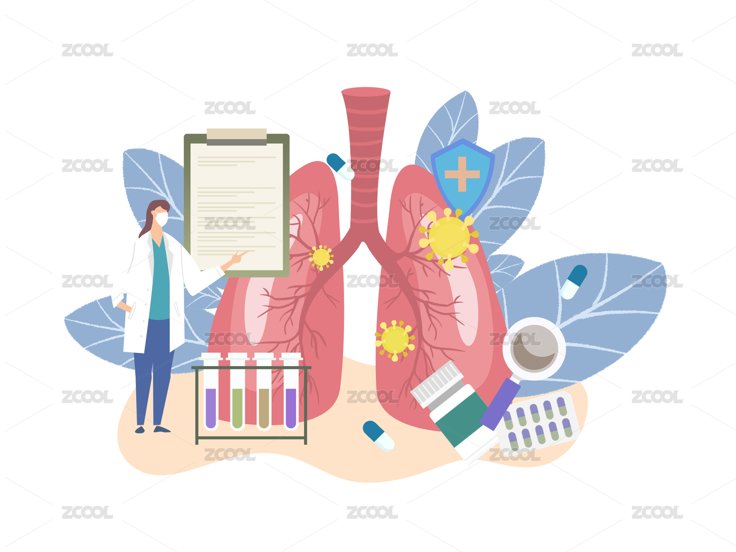 蓝色植物药剂放大镜扁平风矢量肺科场景
