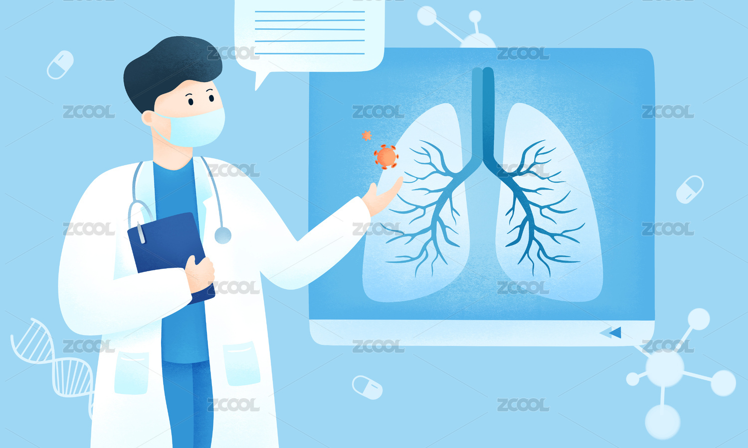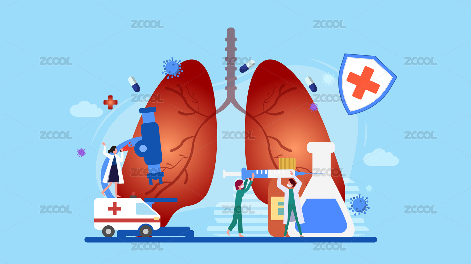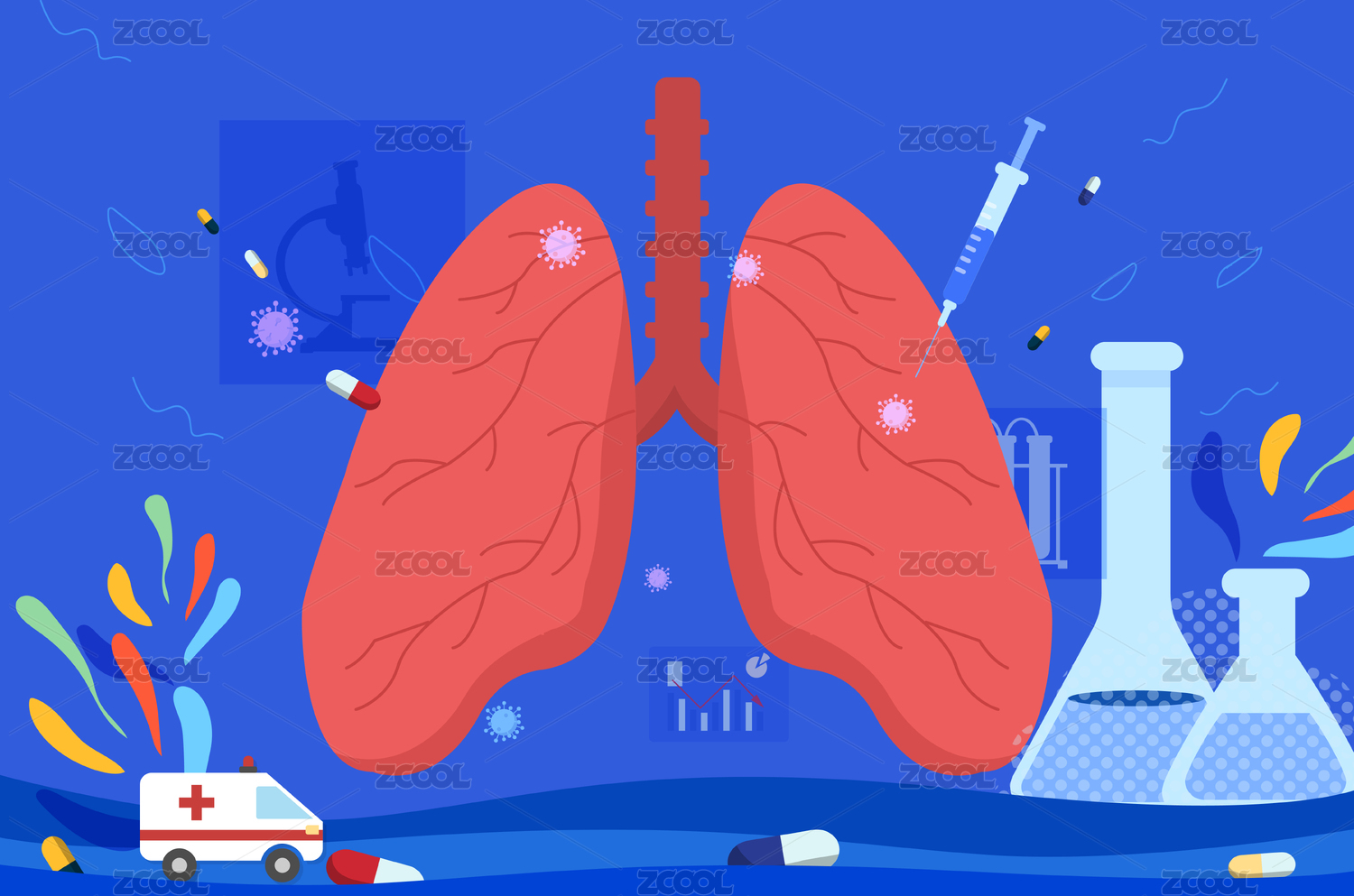 蓝色植物药剂放大镜扁平风矢量肺科场景