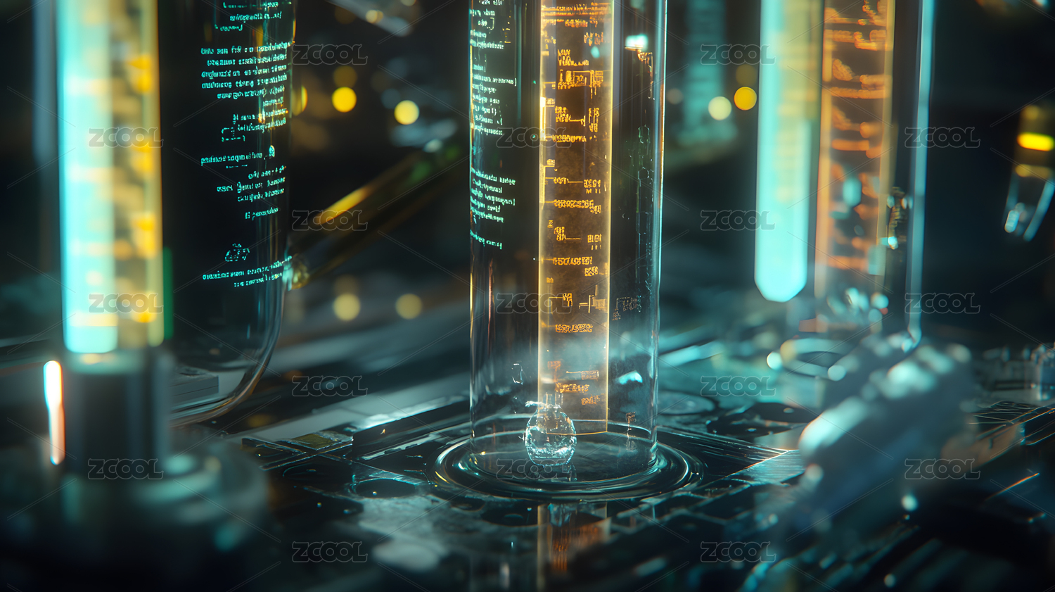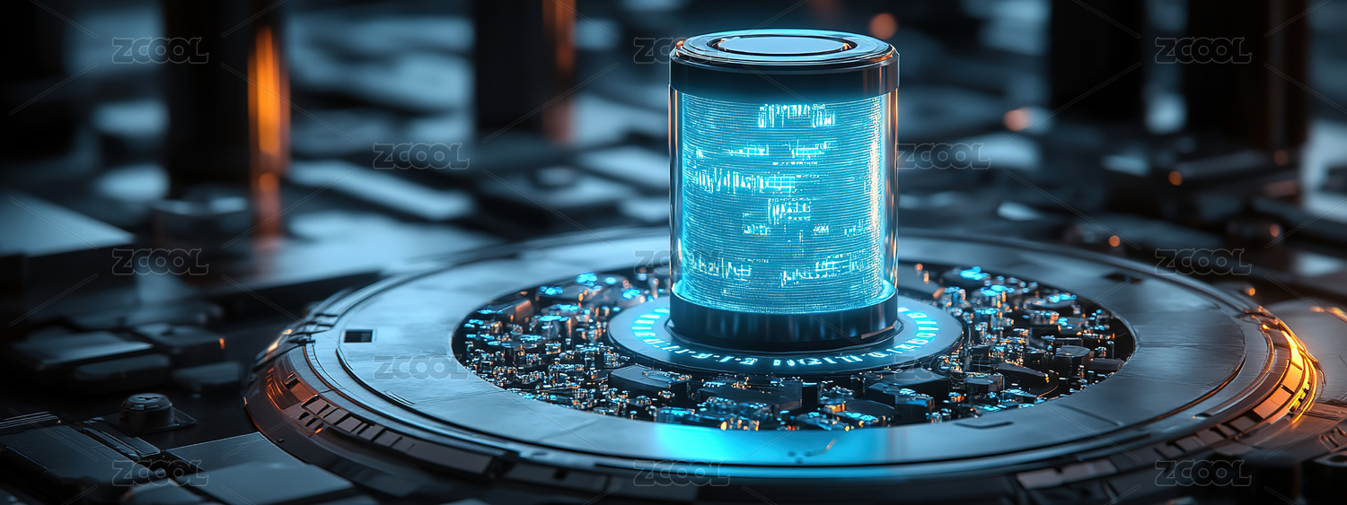 科技未来科幻发光装置蓝色机械电路芯片数据