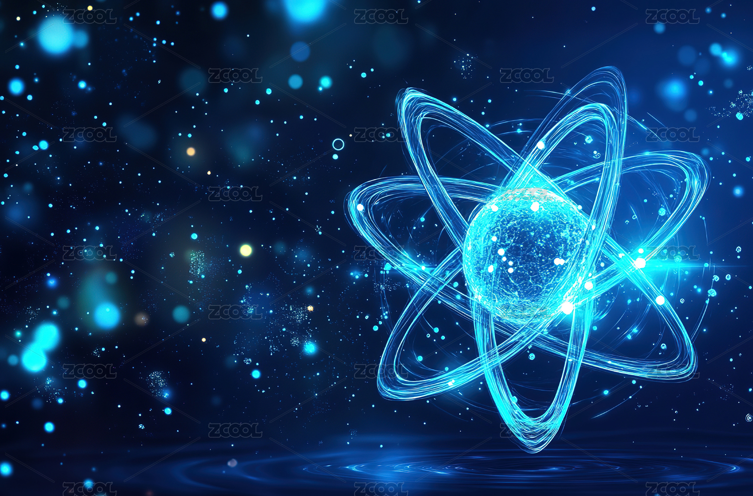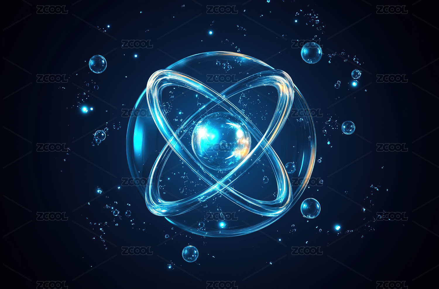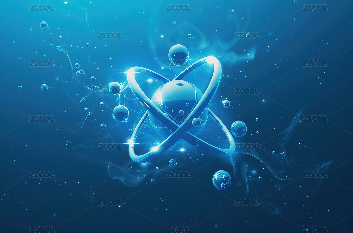 蓝色原子模型科学抽象图像