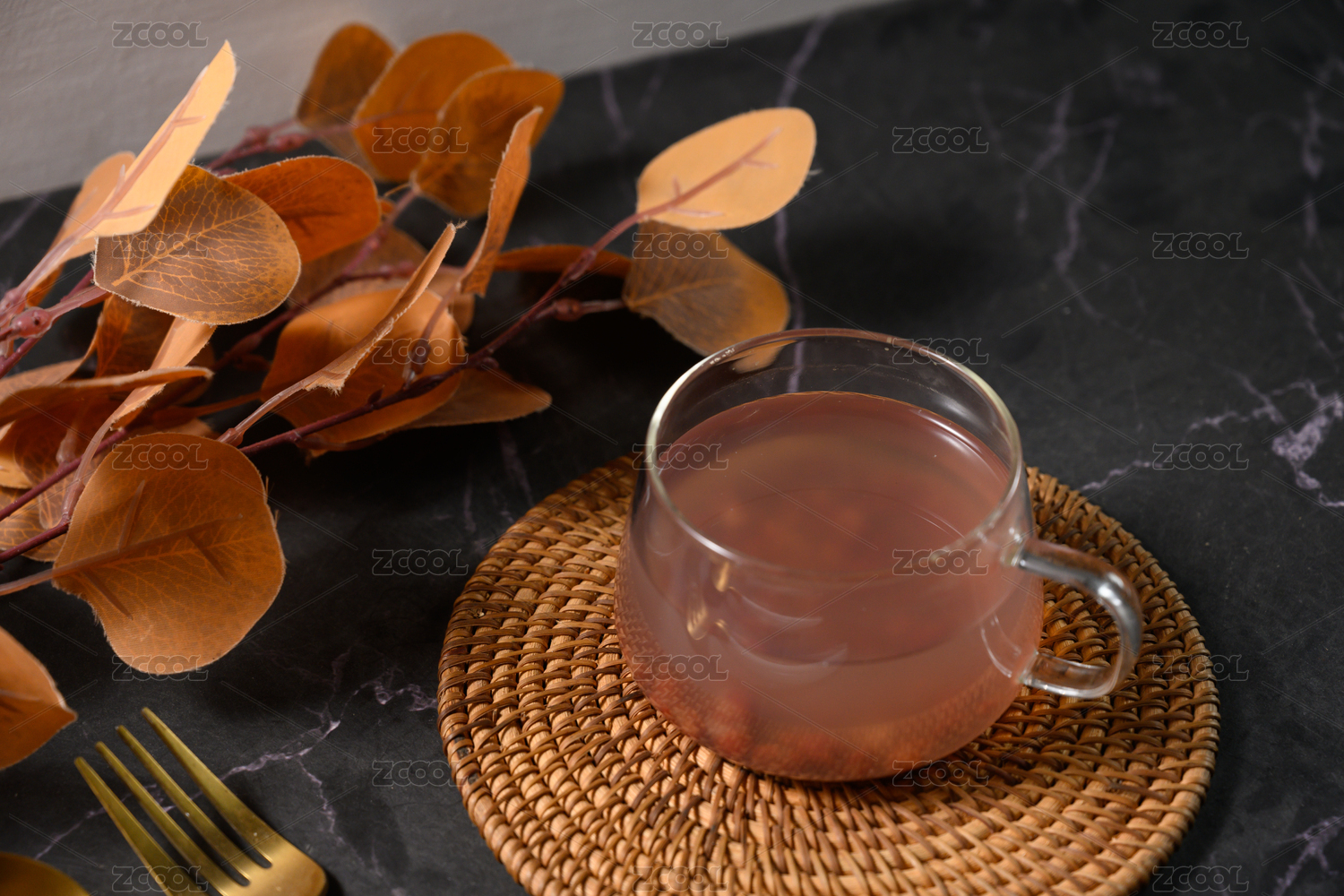 桌面上的杯子里的健康养生的半枝莲凉菜