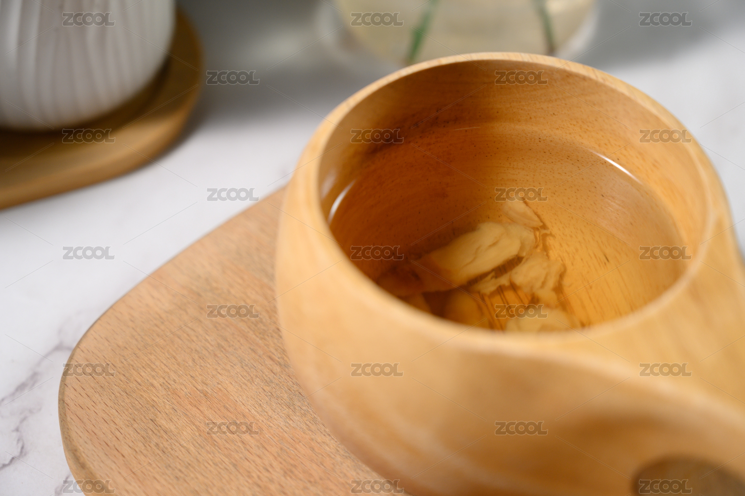 桌面上的杯子里的甘甜可口的马鞭草茶