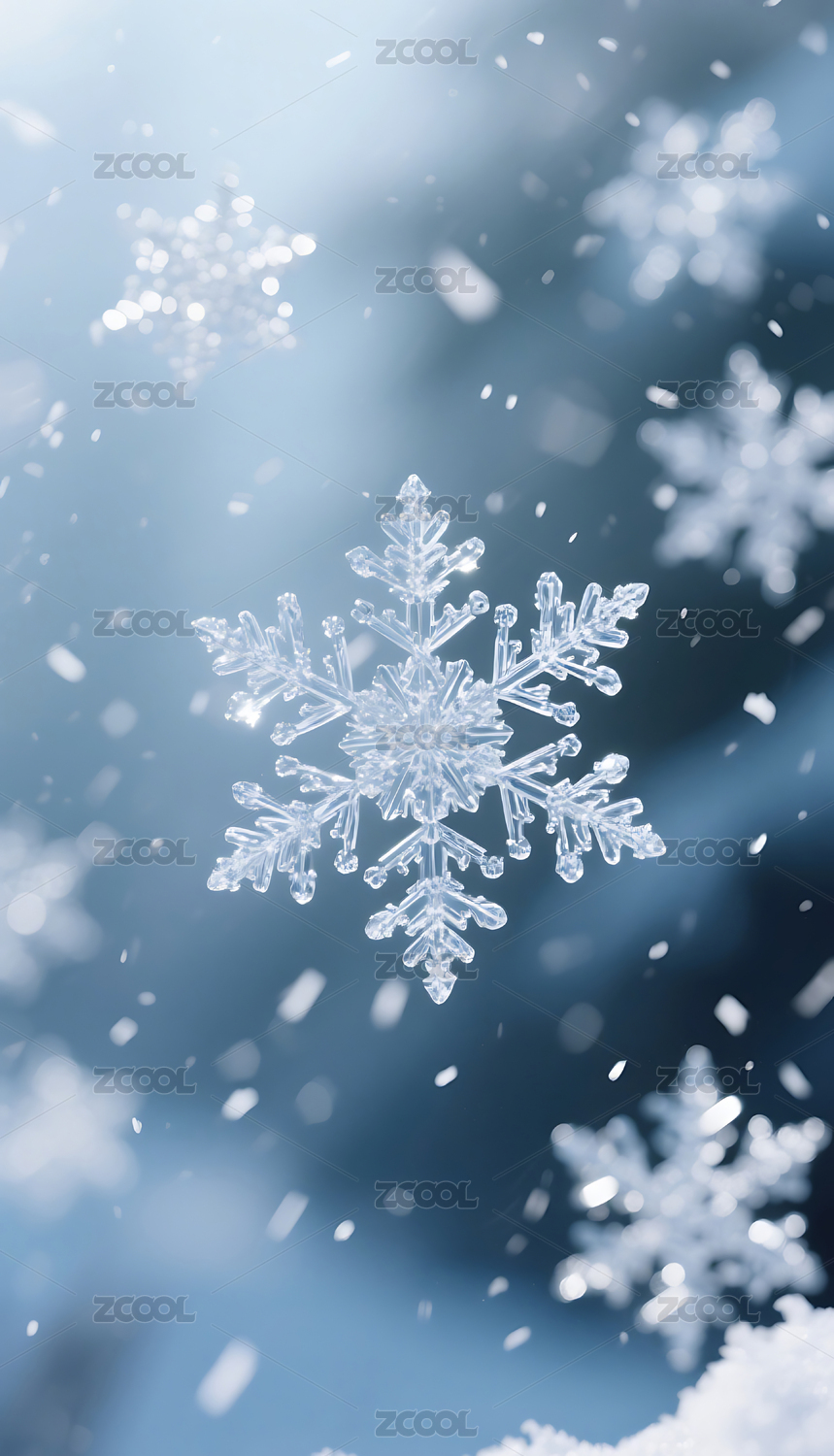 冬日雪景晶莹剔透的雪花