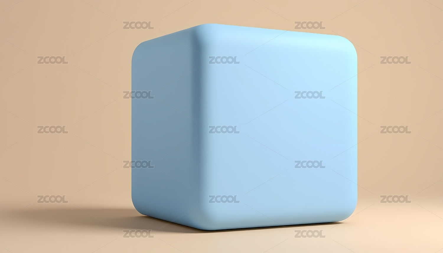 淡蓝色圆角立方体置于米色背景