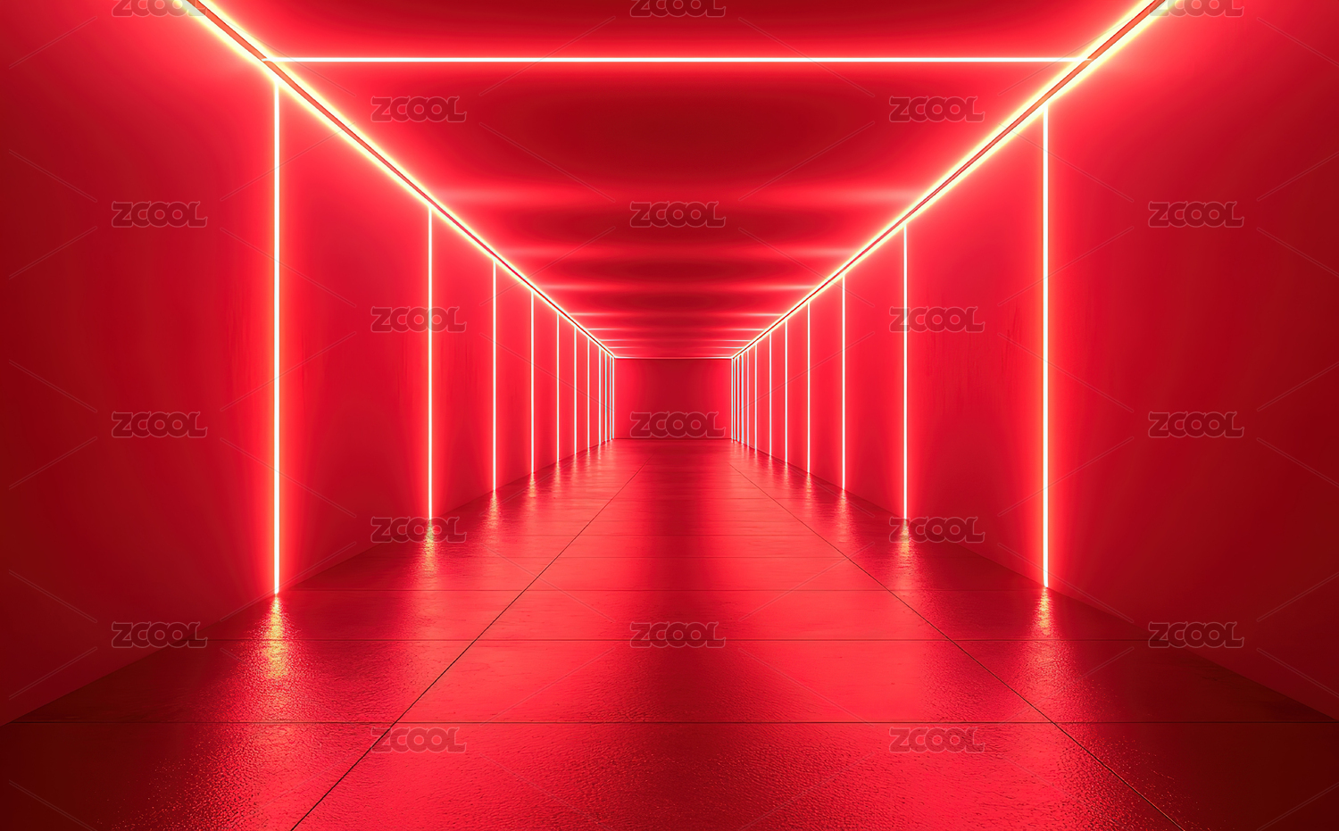 红色霓虹灯隧道走廊