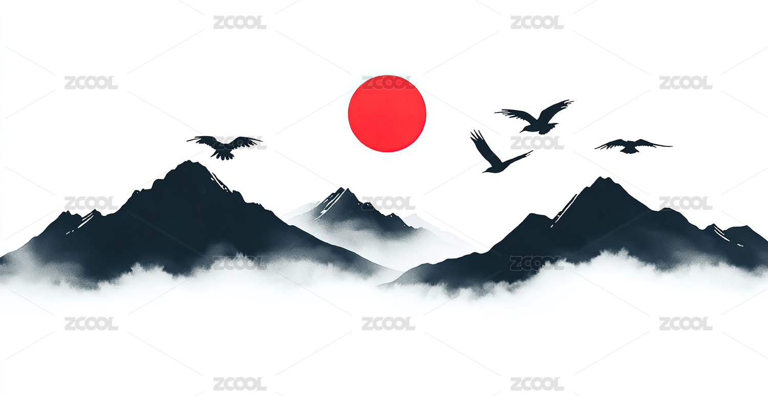 中国文化,中国画,插画,新中式风格,风景,高山,写意画,无人,淡雅,艺术