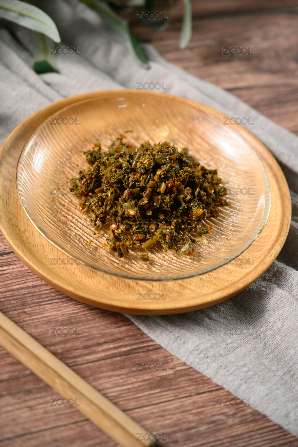 桌面上的盘子里的美味可口的凉拌香椿芽