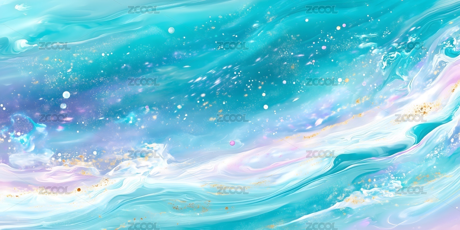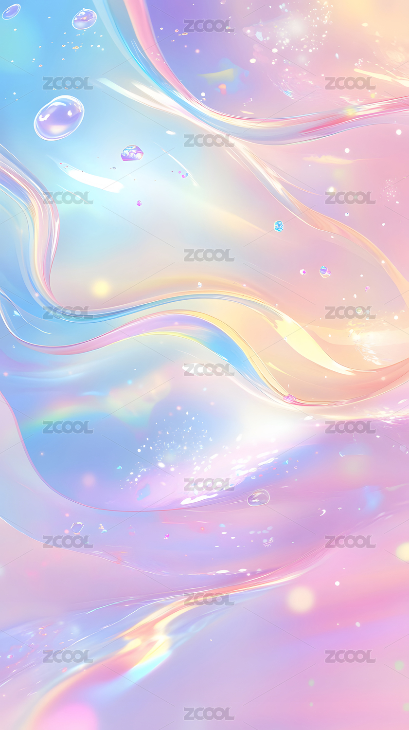 梦幻抽象荧光色卷曲飘动的流体波浪3D立体