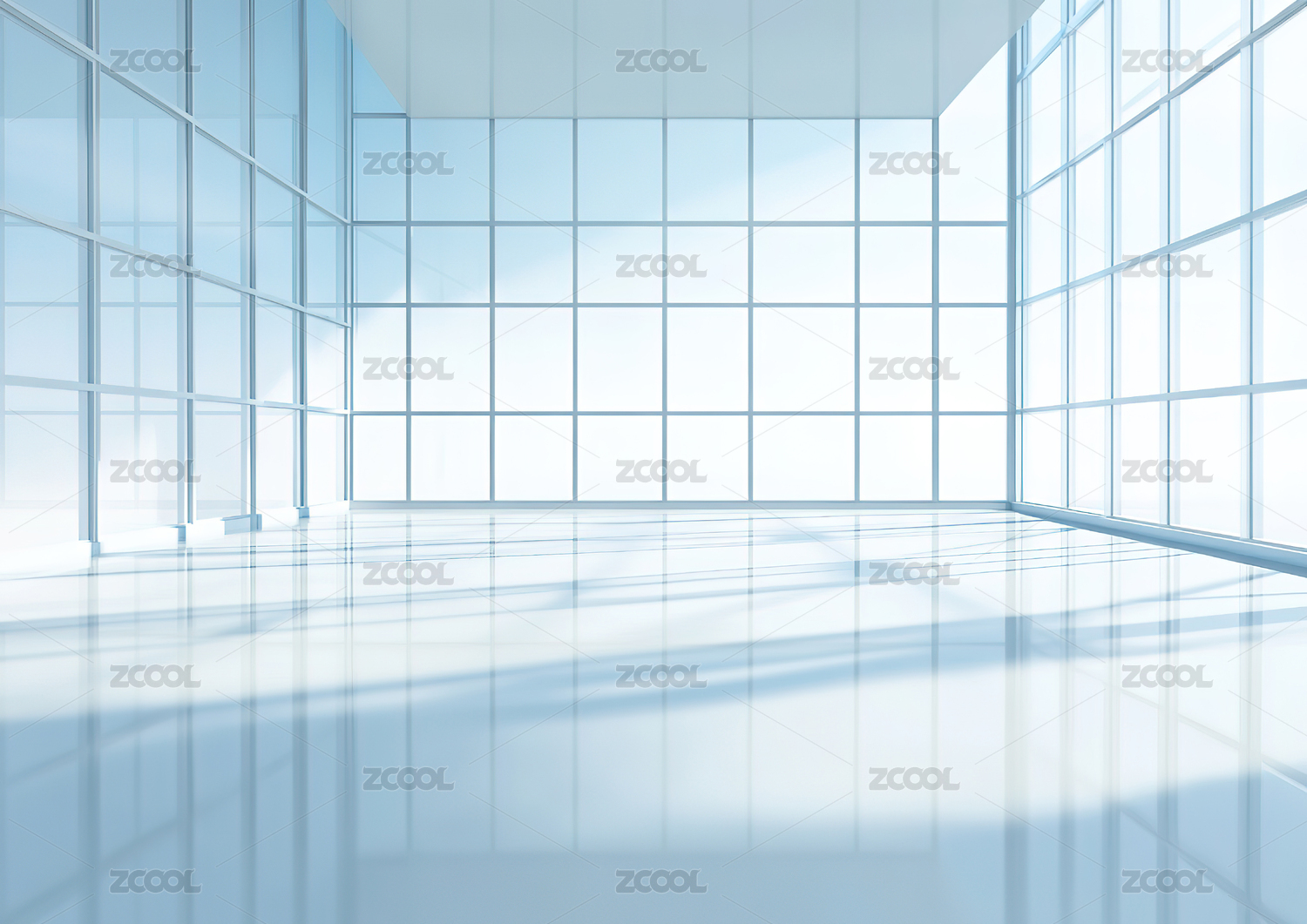 白色玻璃幕墙组成的空间