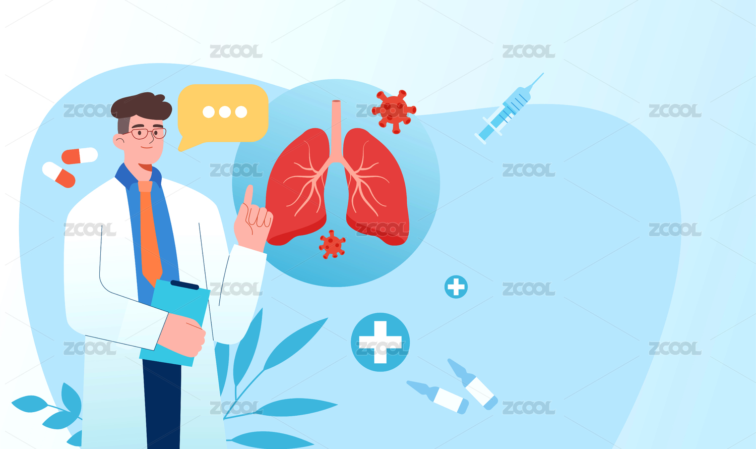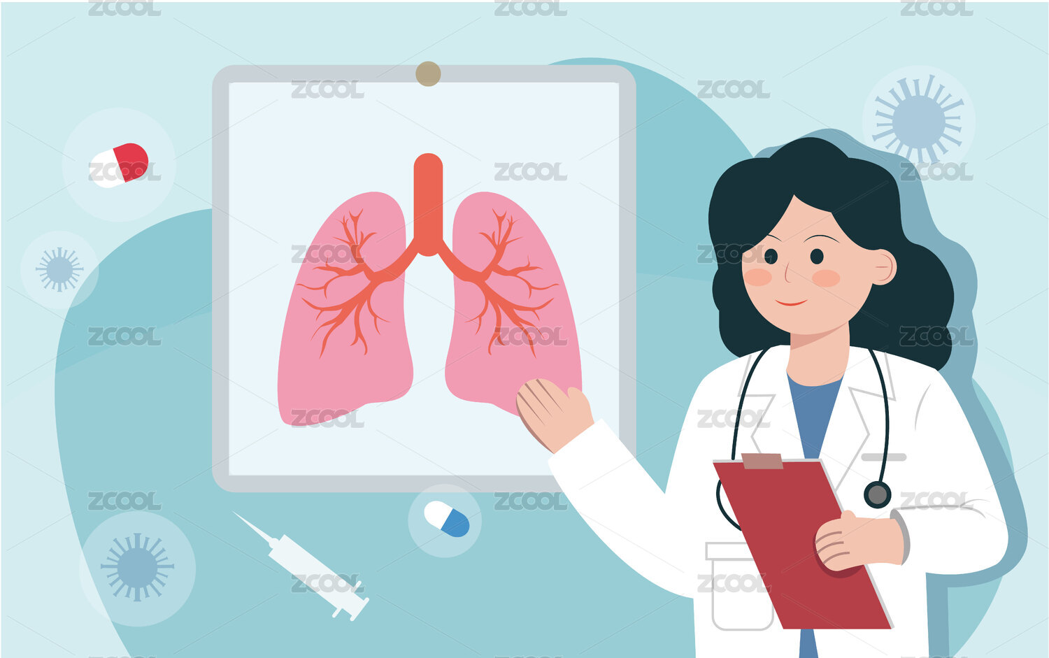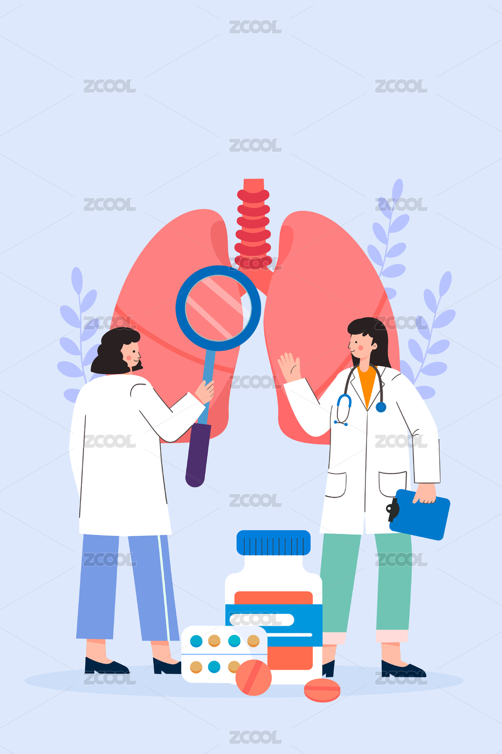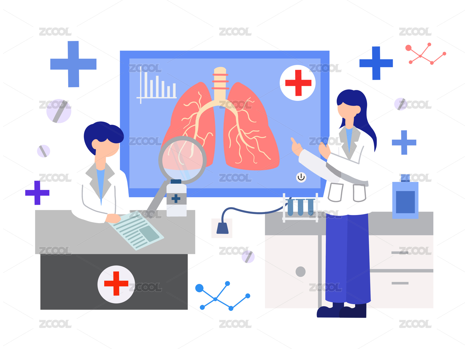 蓝粉色扁平风矢量肺科场景肺部检验元素