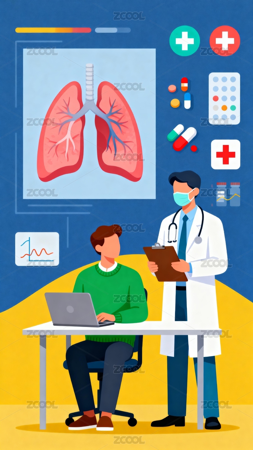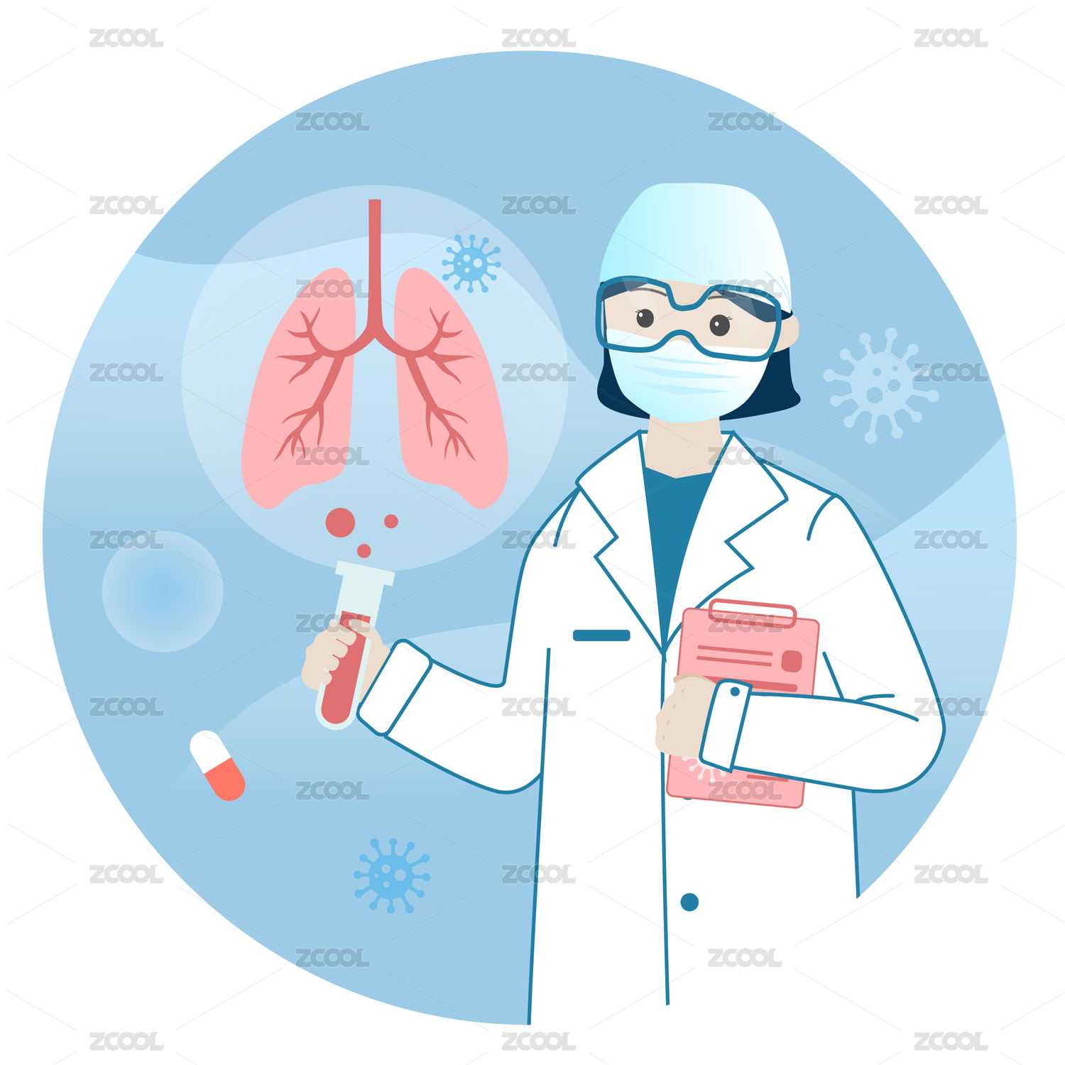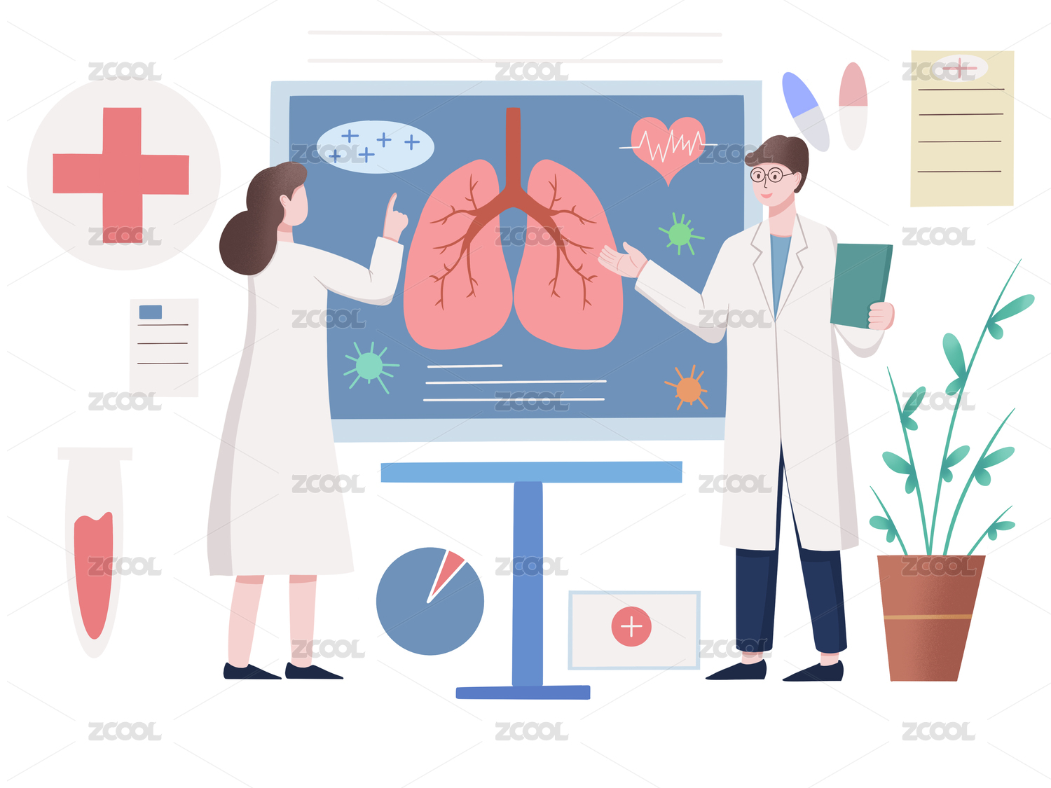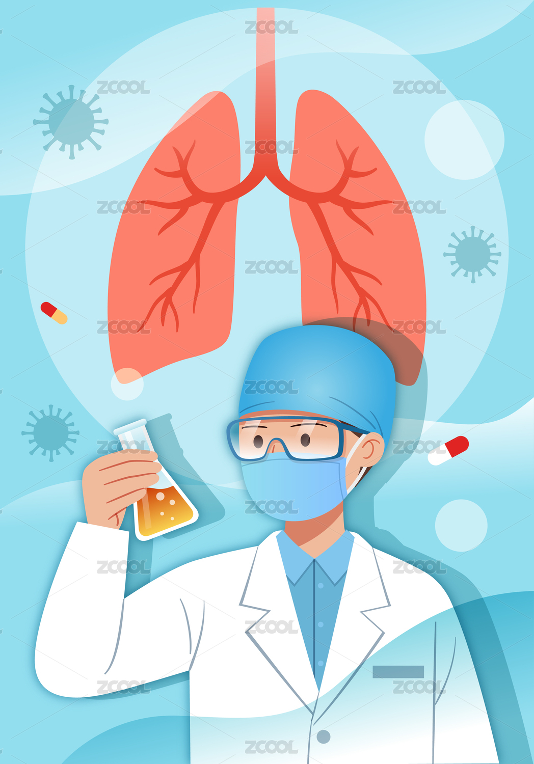 蓝粉色扁平风矢量肺科场景肺部检验元素