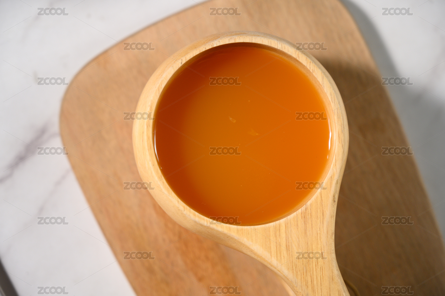 桌面上的盘子里的美味可口的冰花酸梅酱