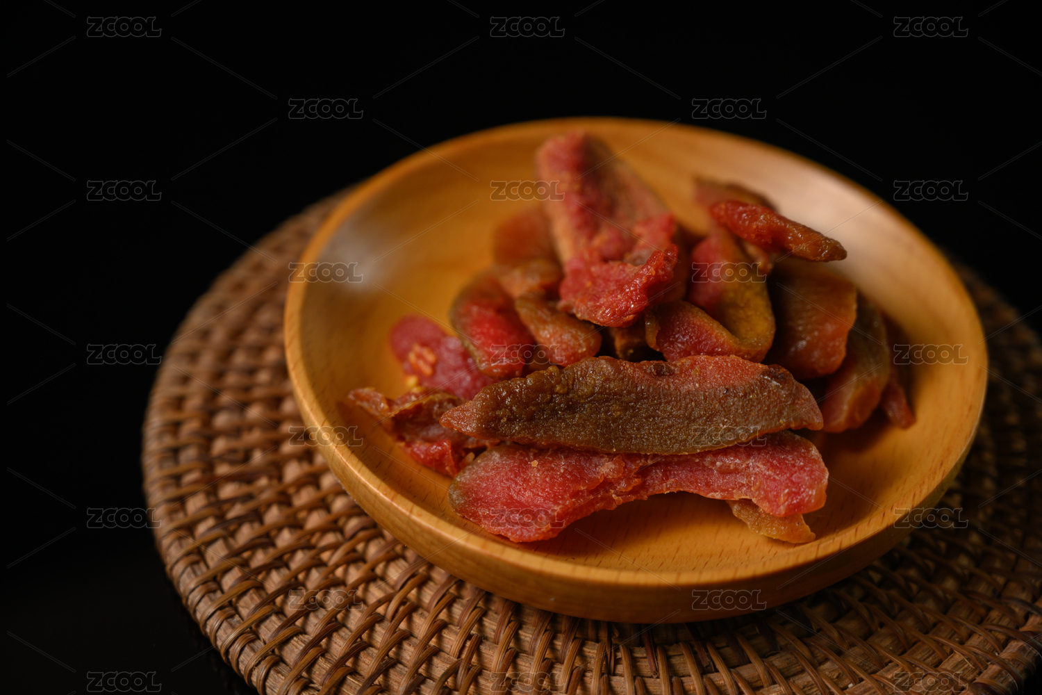 桌面上的盘子里的美味可口的芭乐干