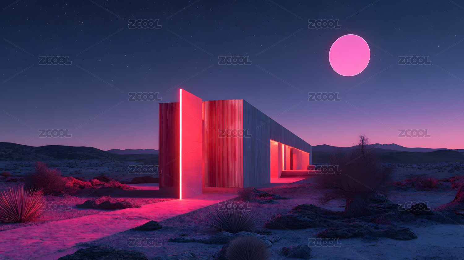 霓虹沙漠小屋月夜静谧