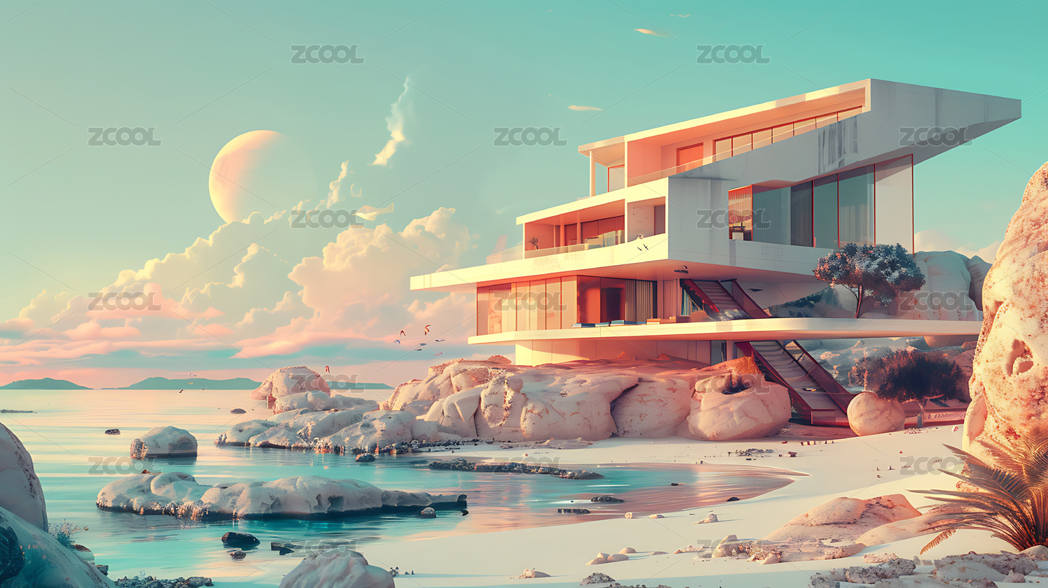 赛博朋克建筑海边房子别墅户外科技虚构