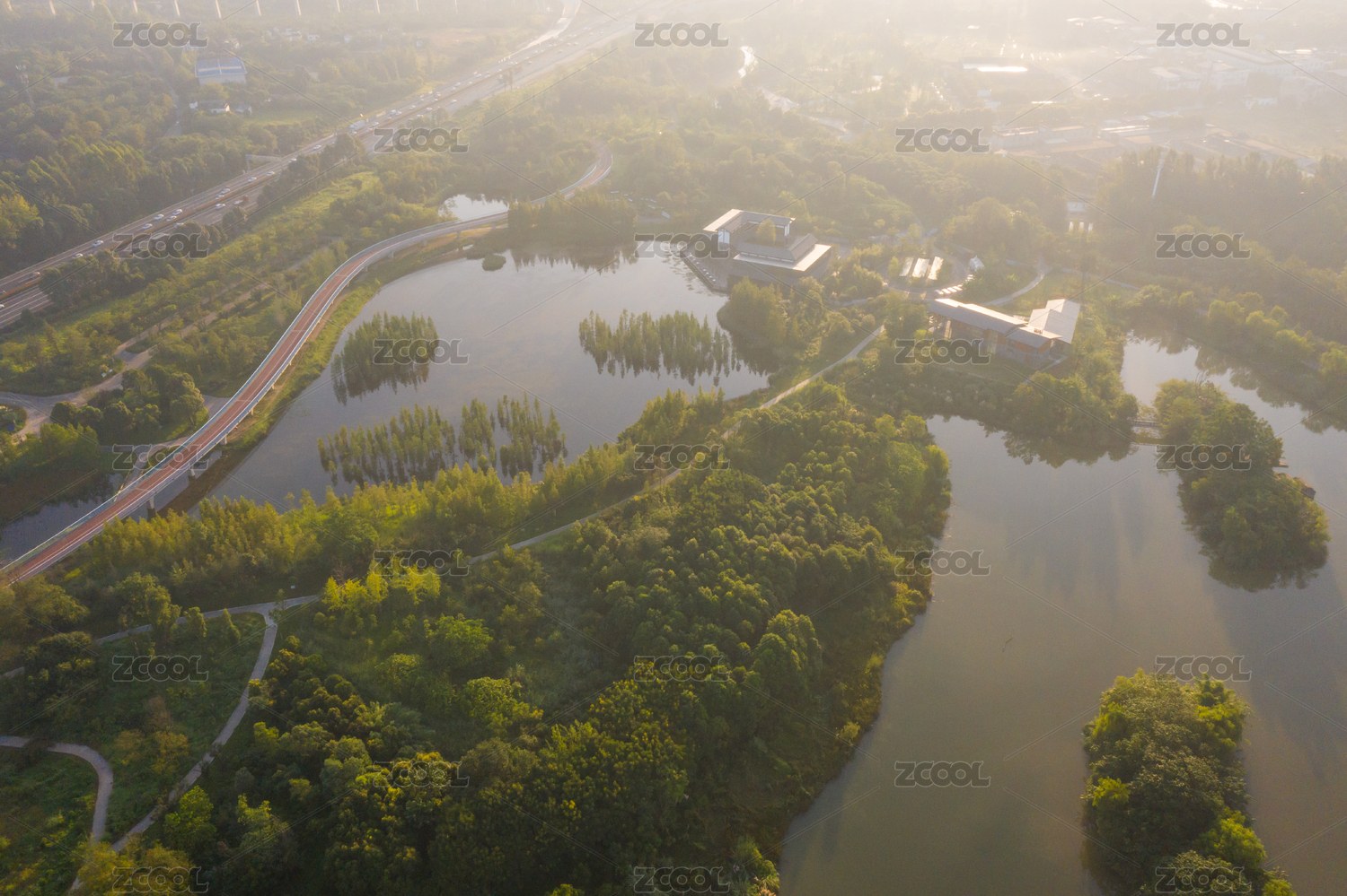 成都白鹭湾湿地公园航拍