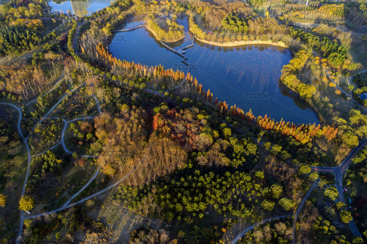 成都白鹭湾湿地公园秋季冬季水杉红叶航拍