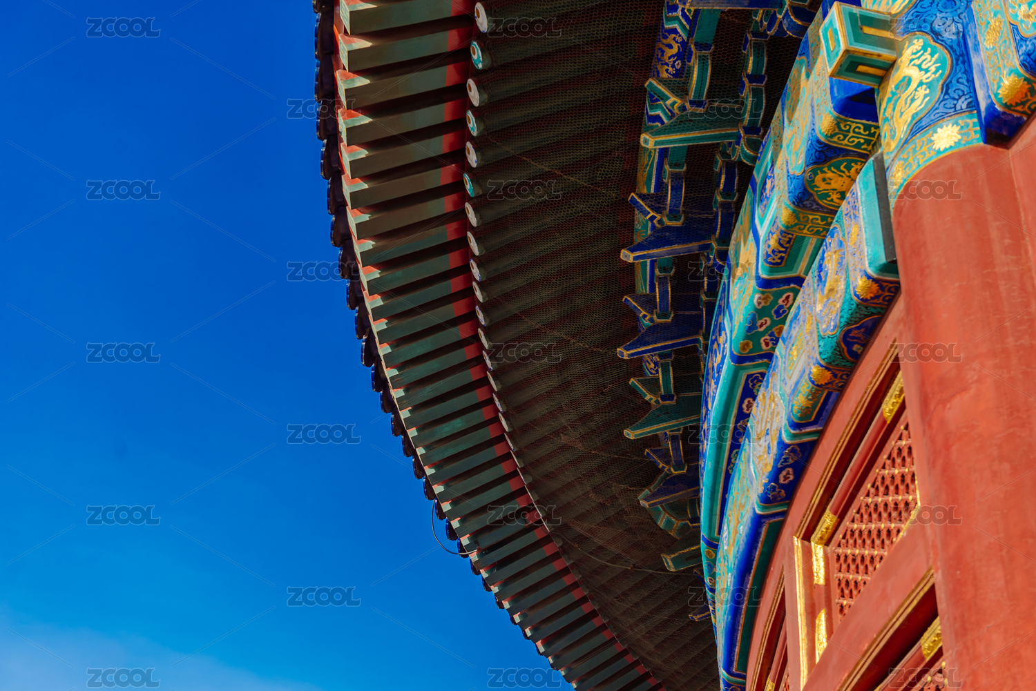 蓝天下的中国北京故宫博物馆的古宫殿建筑