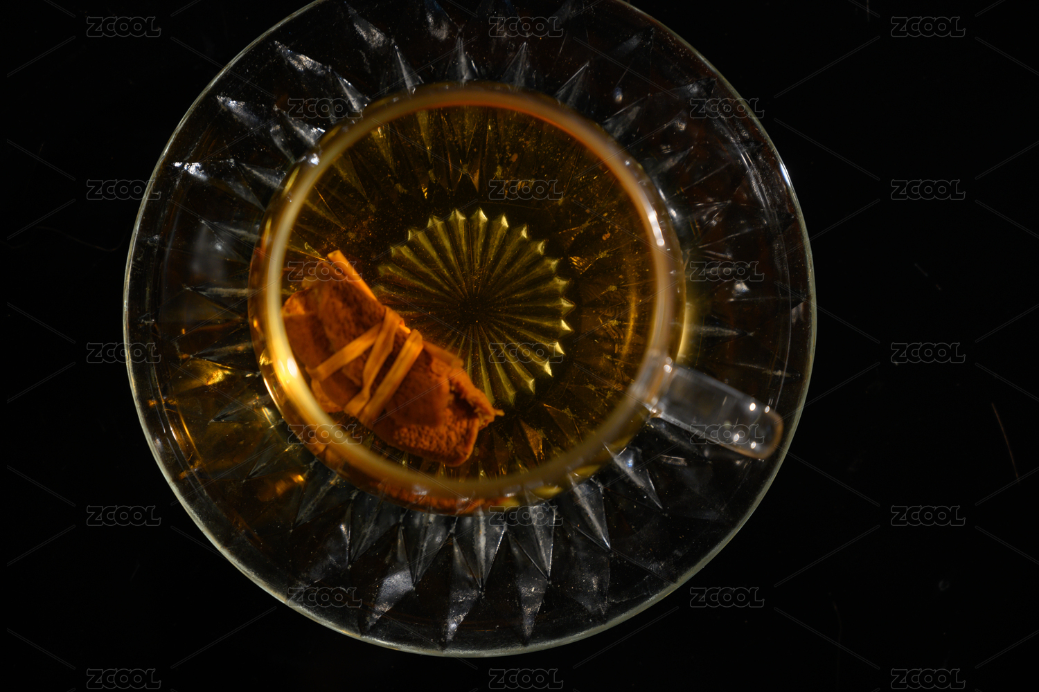桌面上的盘子里的美味可口的陈皮三宝扎茶