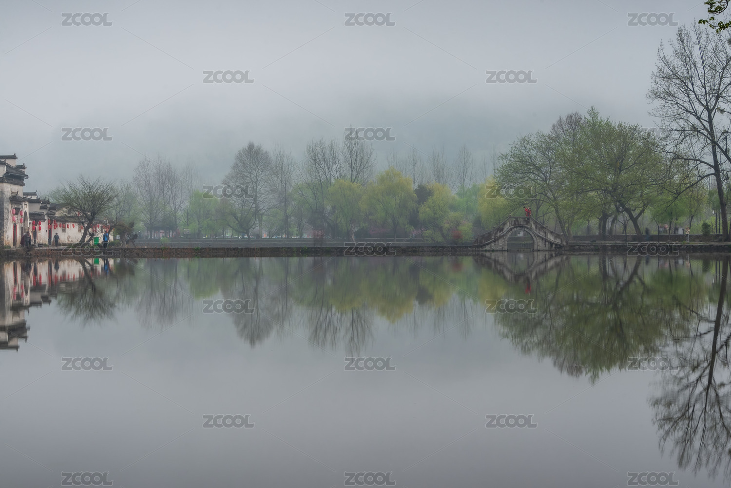 中国,安徽,黄山市,黟县,宏村,春季,春天,南湖,月沼,倒影