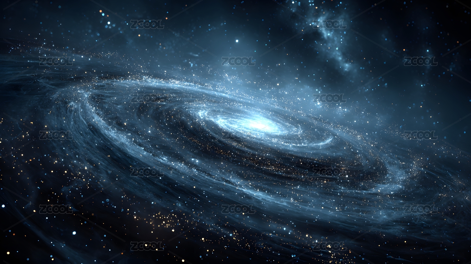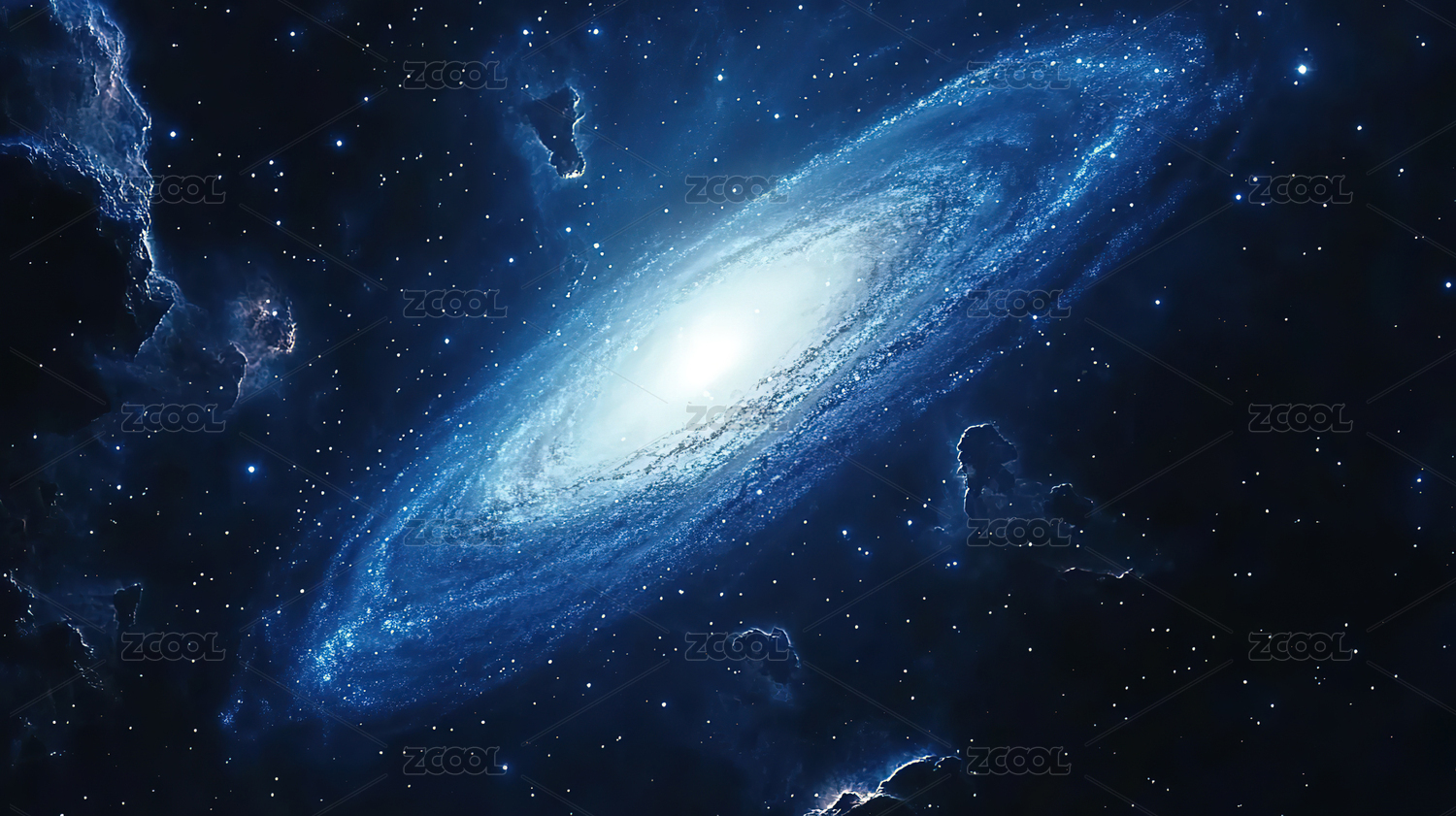 深邃宇宙星系 浩瀚星云绽放蓝光