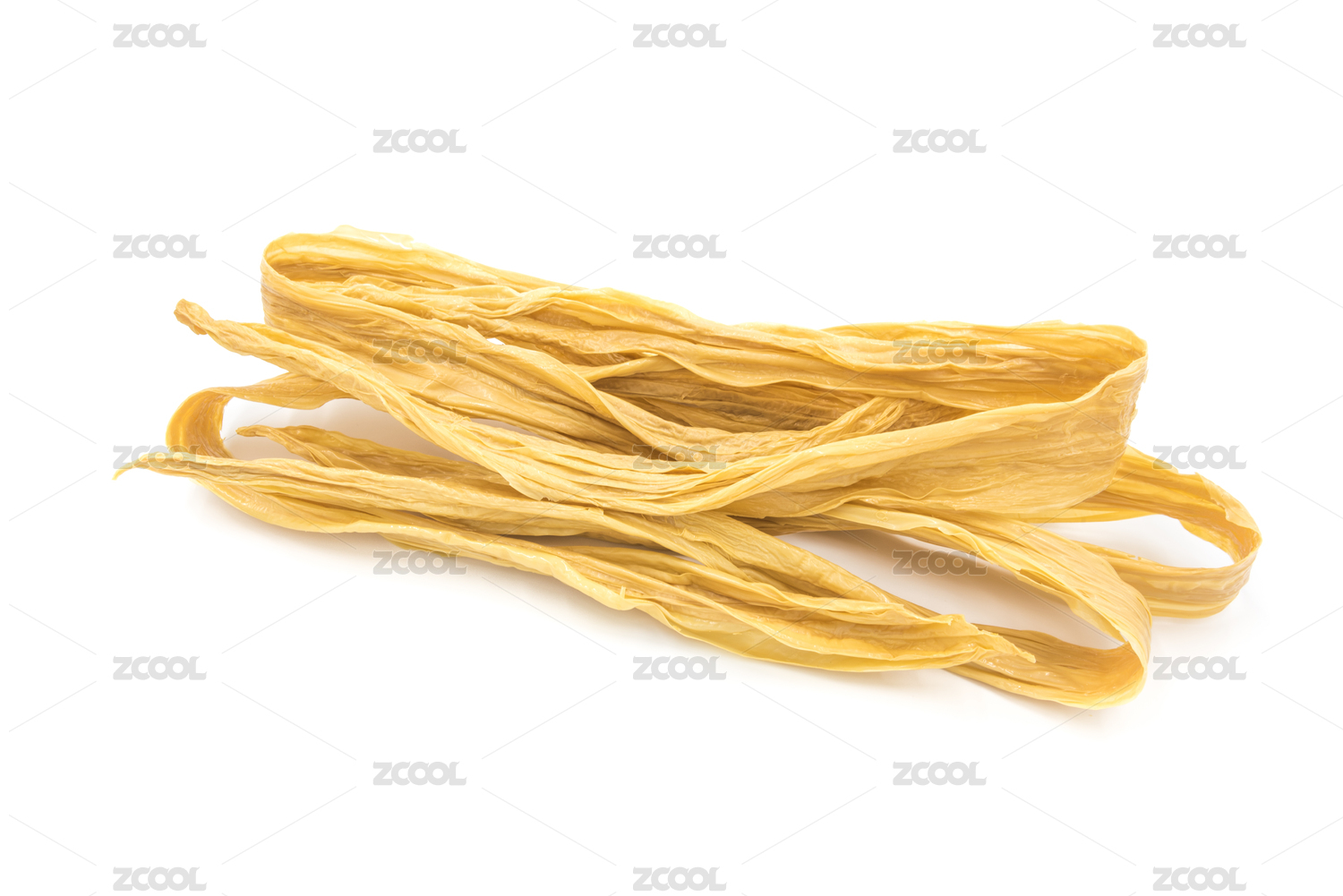 摆放在白色背景上面的干腐竹