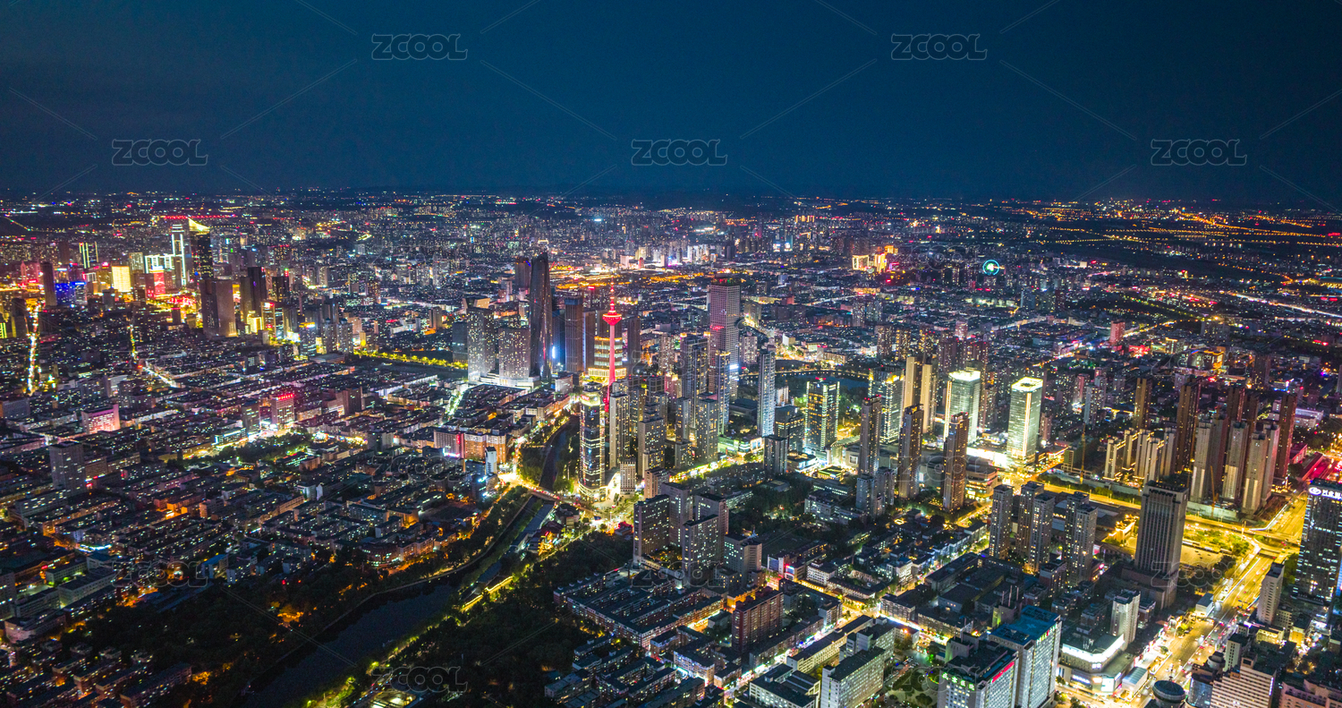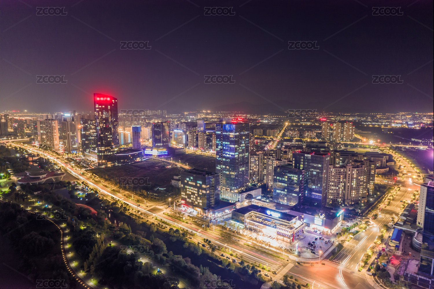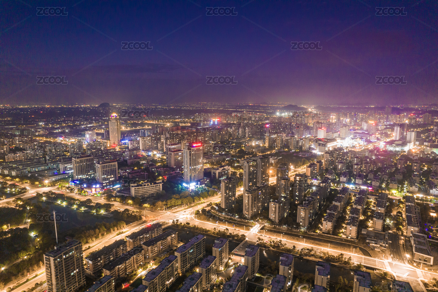 航拍湖北武汉光谷广场星河雕塑交通转盘夜景