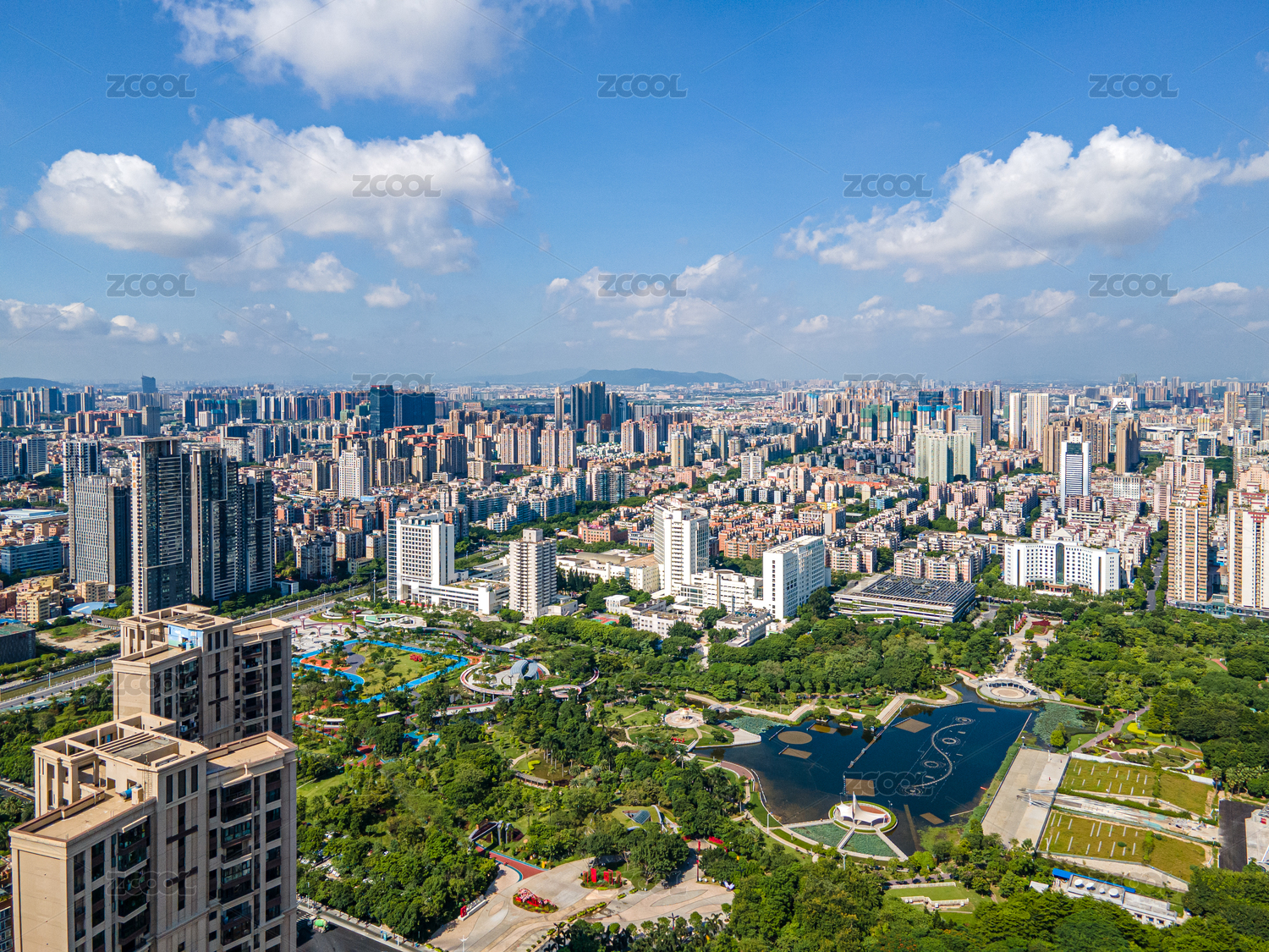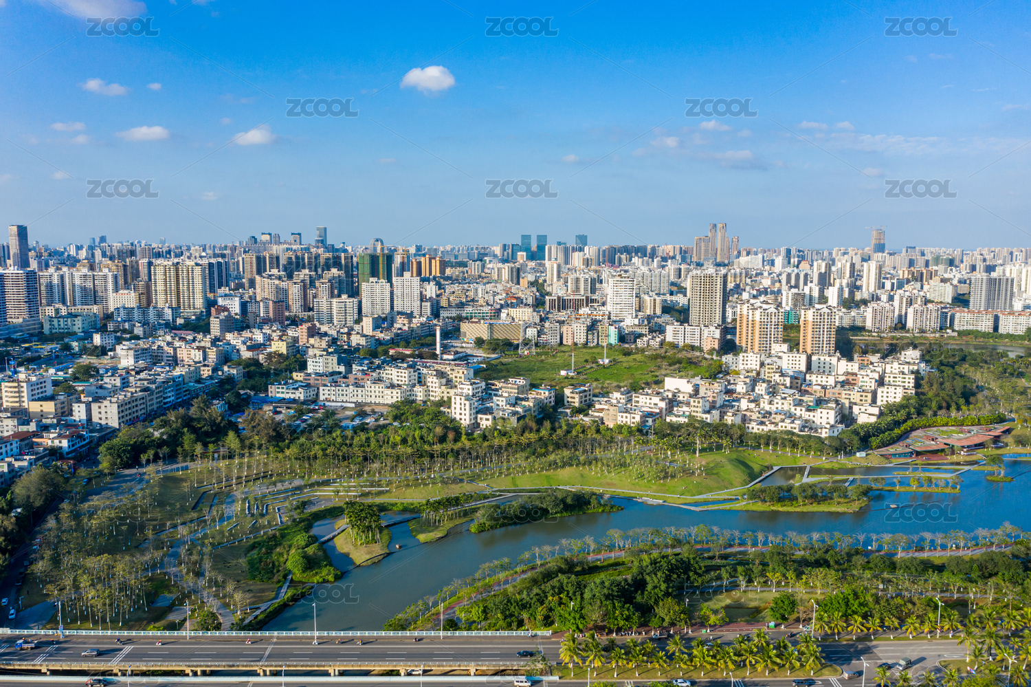 航拍海南海口美舍河凤翔湿地公园海绵城市