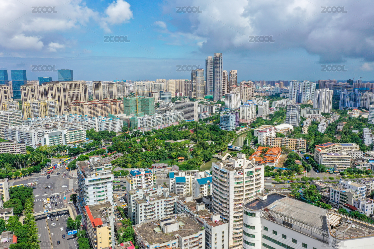 航拍中国海南海口琼山区琼州大道周边高楼建筑群