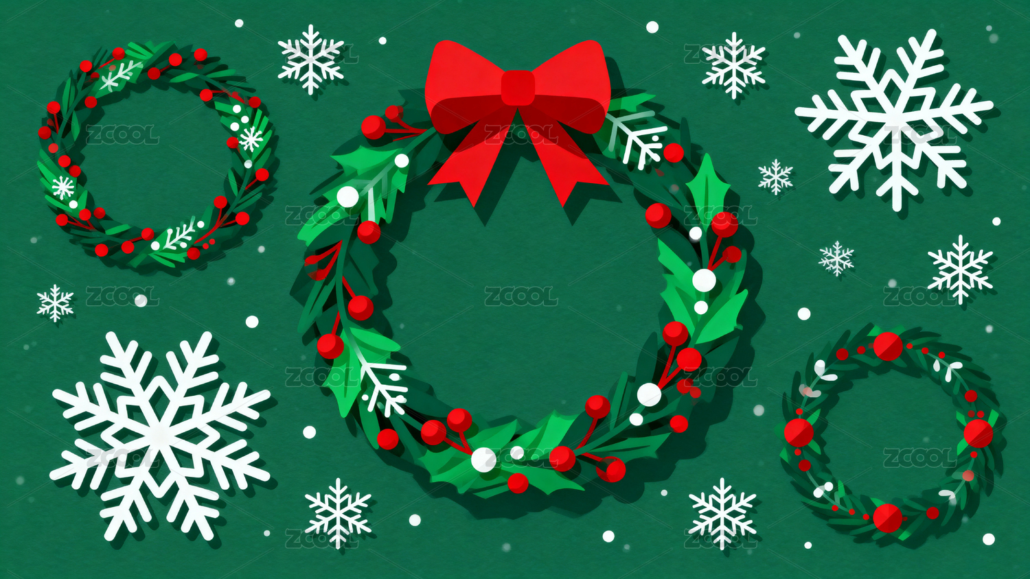 圣诞花环与雪花装饰