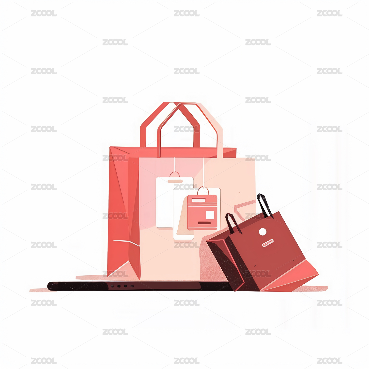 购物礼品纸袋化妆品首饰服装鲜花扁平插画