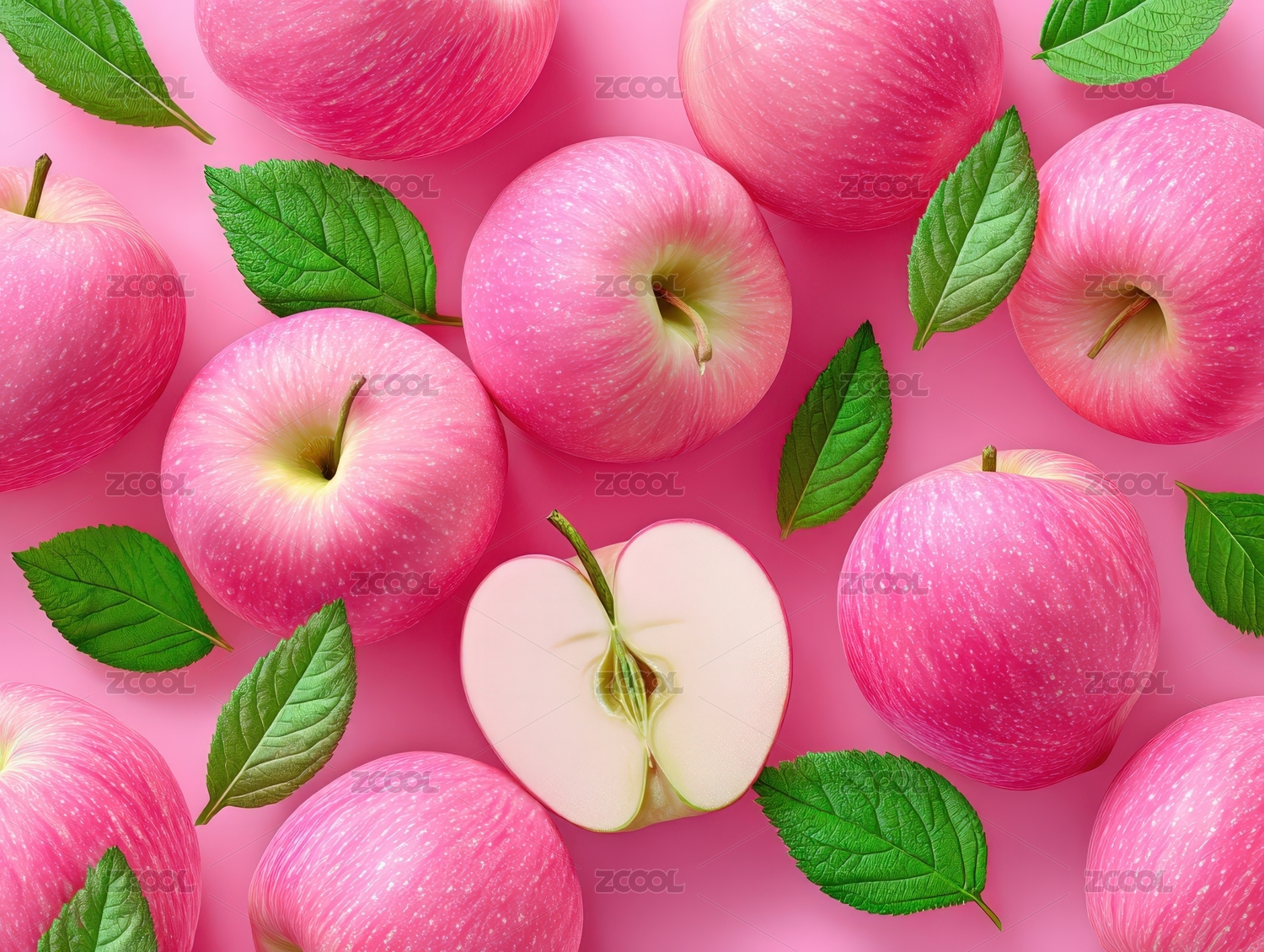 粉色背景上的新鲜苹果