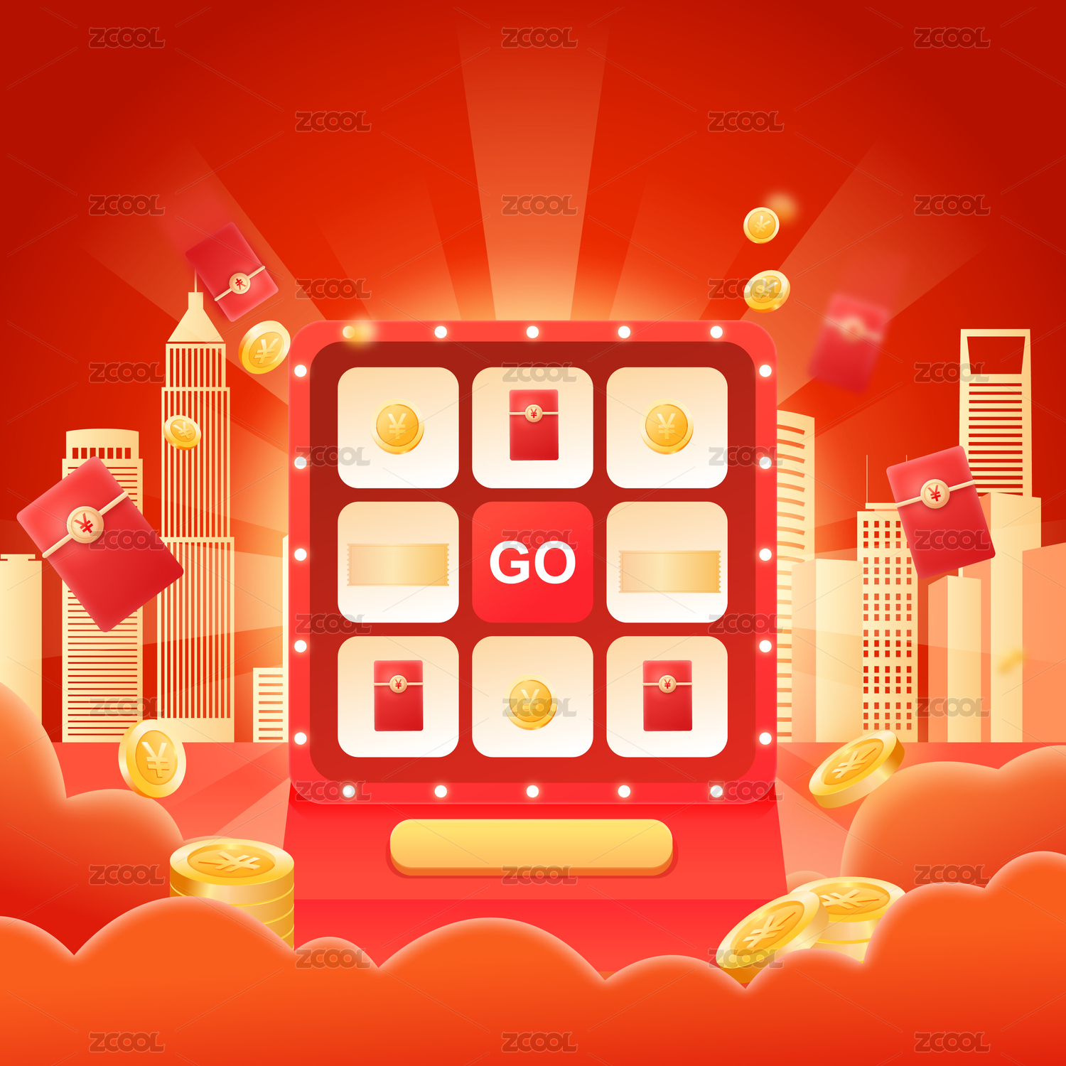 3D金融理财电商抽奖幸运大转盘矢量插画