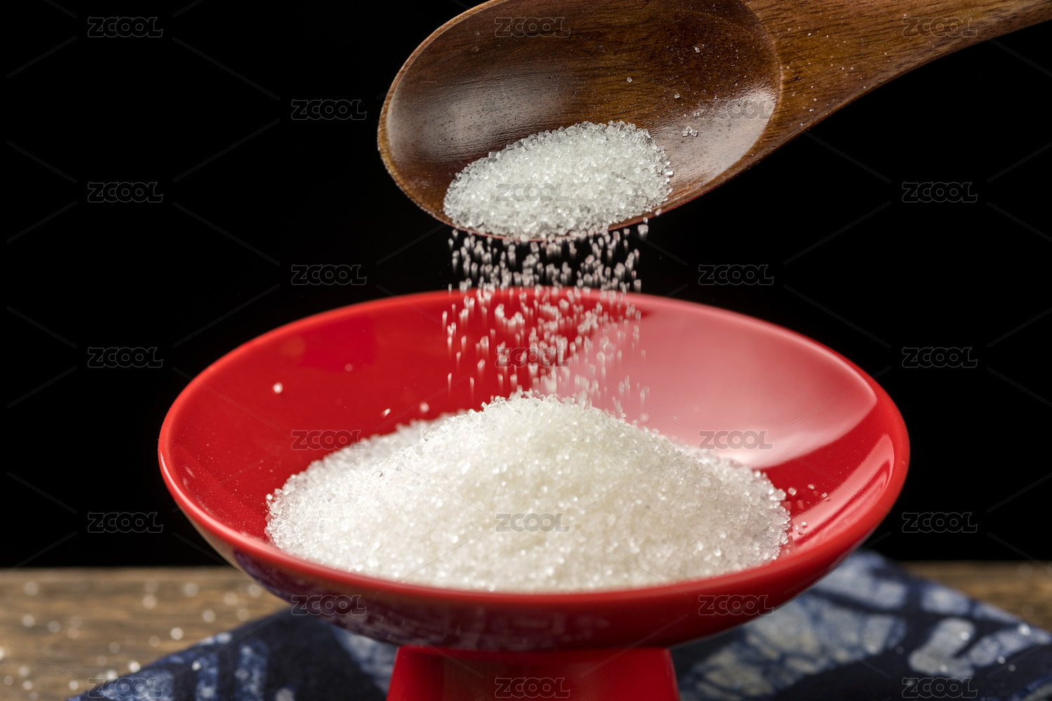 勺子里撒下的白糖