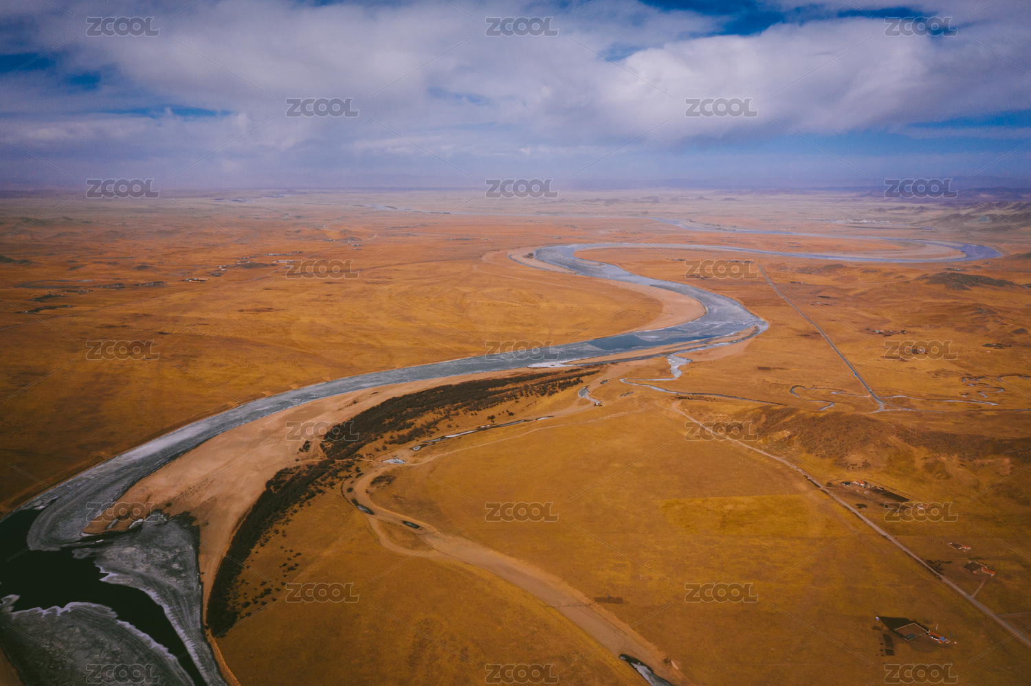 中国四川阿坝州若尔盖九曲黄河第一弯航拍图