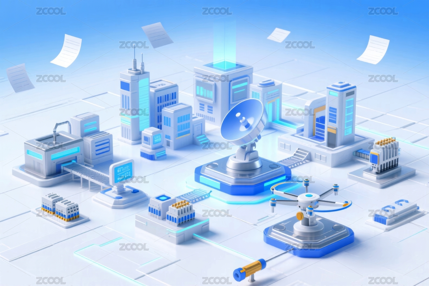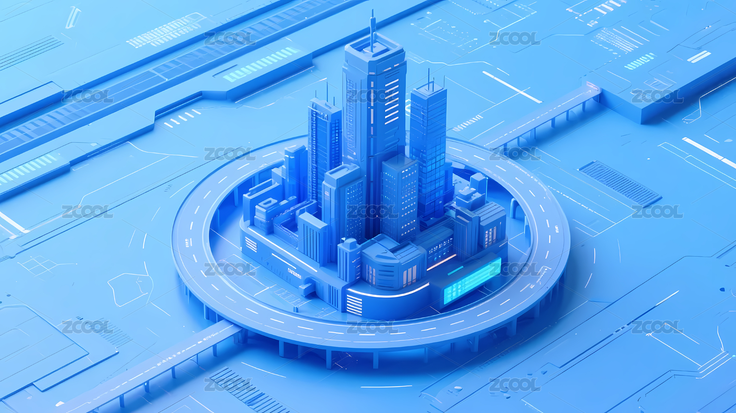 数码科技蓝白色智慧城市智能建筑插画海报背