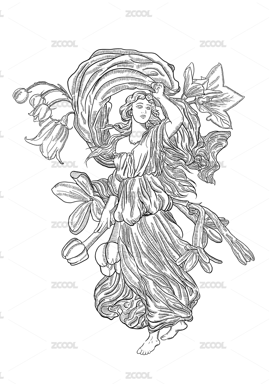 潮流,插画,手绘,花朵,花丛,矢量,背景,花,叶子,连体衣