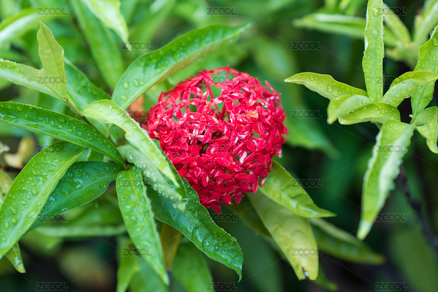 热带被子植物门红色龙船花微距特写