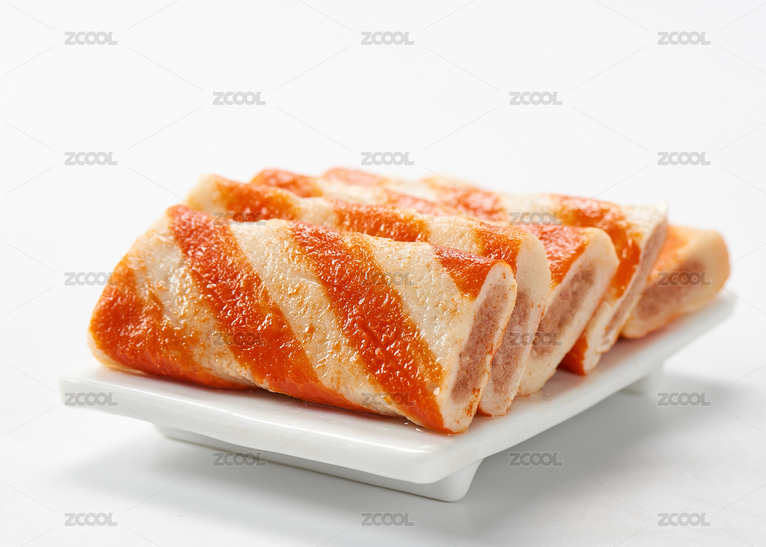 白色背景上摆放的夹心蟹排