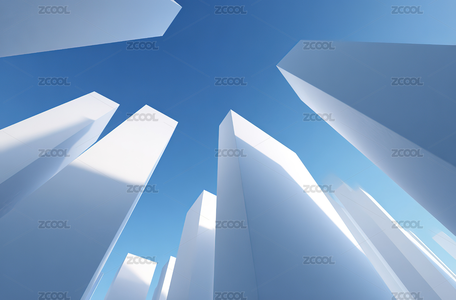 白色几何体在蓝天中汇聚
