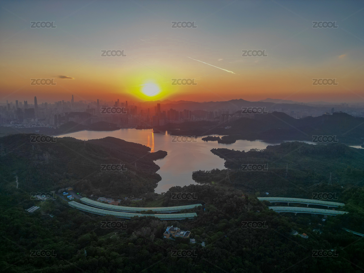 航拍深圳水库和东部过境高速