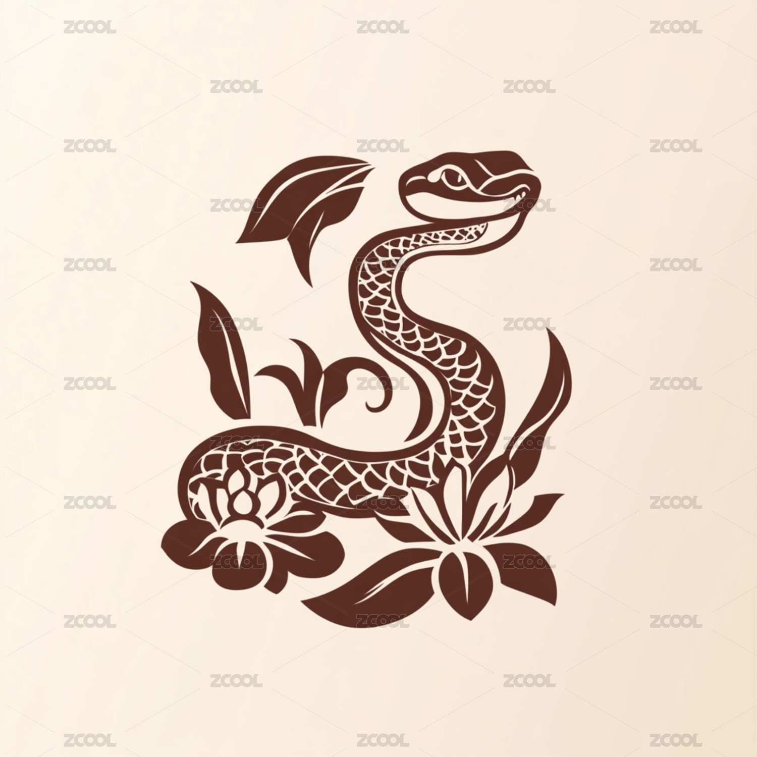 蛇年主题插画艺术剪纸图案logo徽章标志