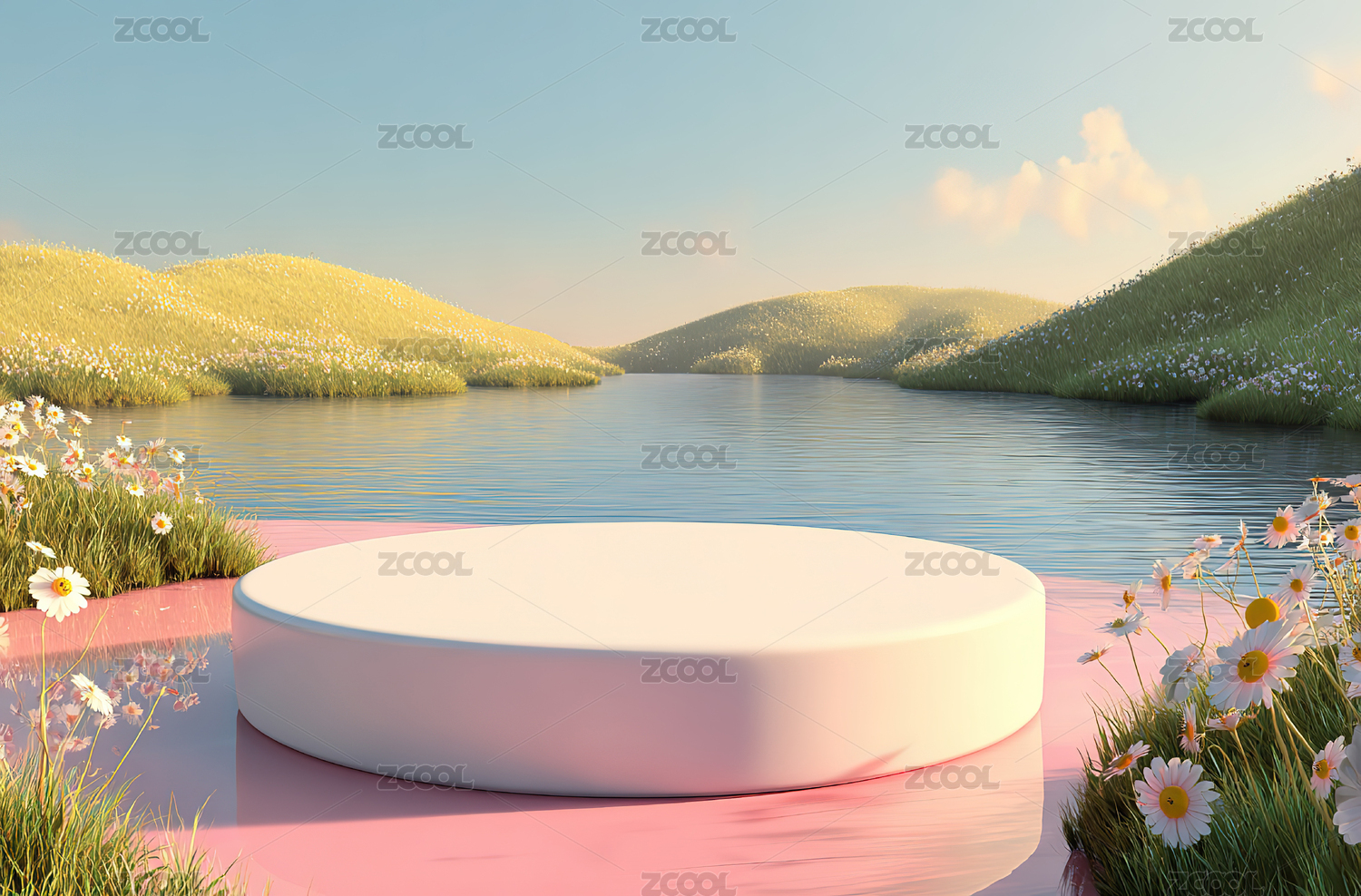 产品展台,展台,展示舞台,平台,奖台,电商,草,草坪,植物,天空