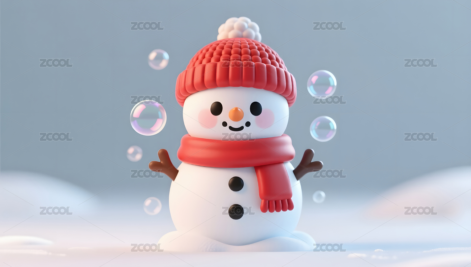 圣诞节,雪人,冬季,冬天,插画,3D,卡通,背景,壁纸,节日